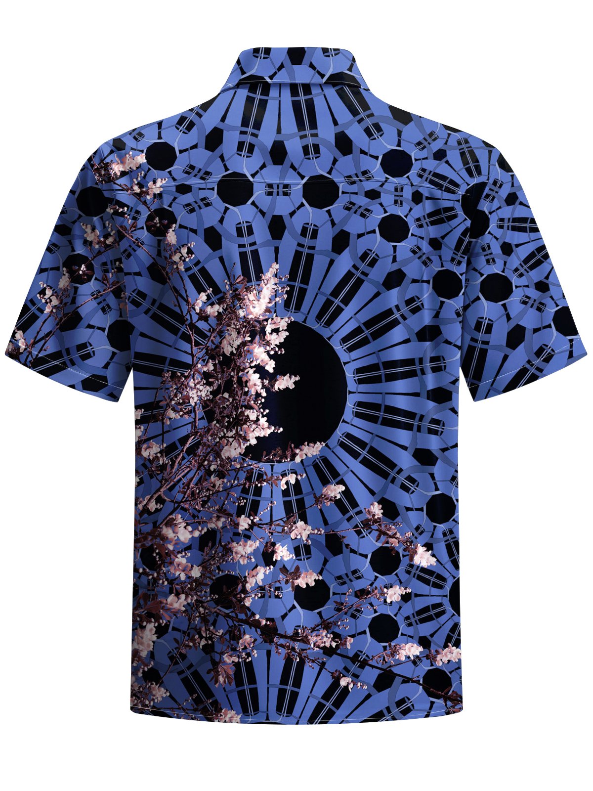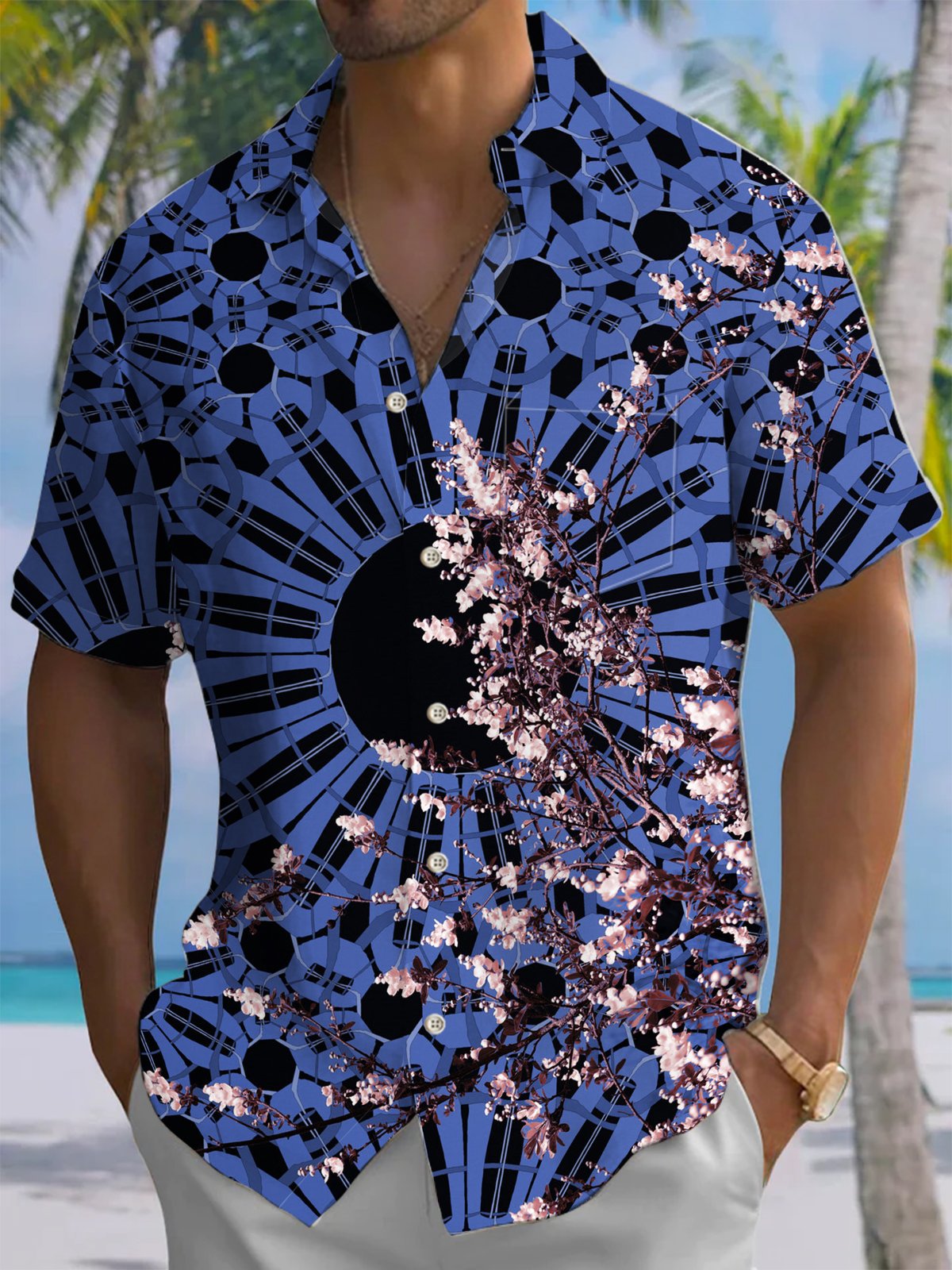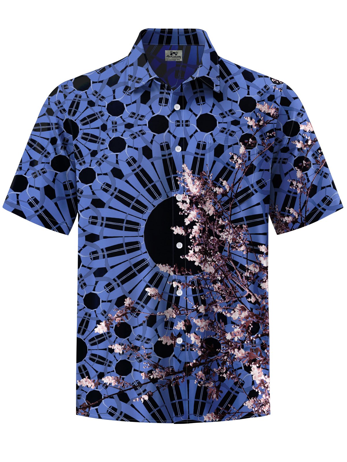 Alohadaddy® Casual Geometric Cherry Blossom Print Art Pocket Stretch Men's Short Sleeve Shirt Big & Tall