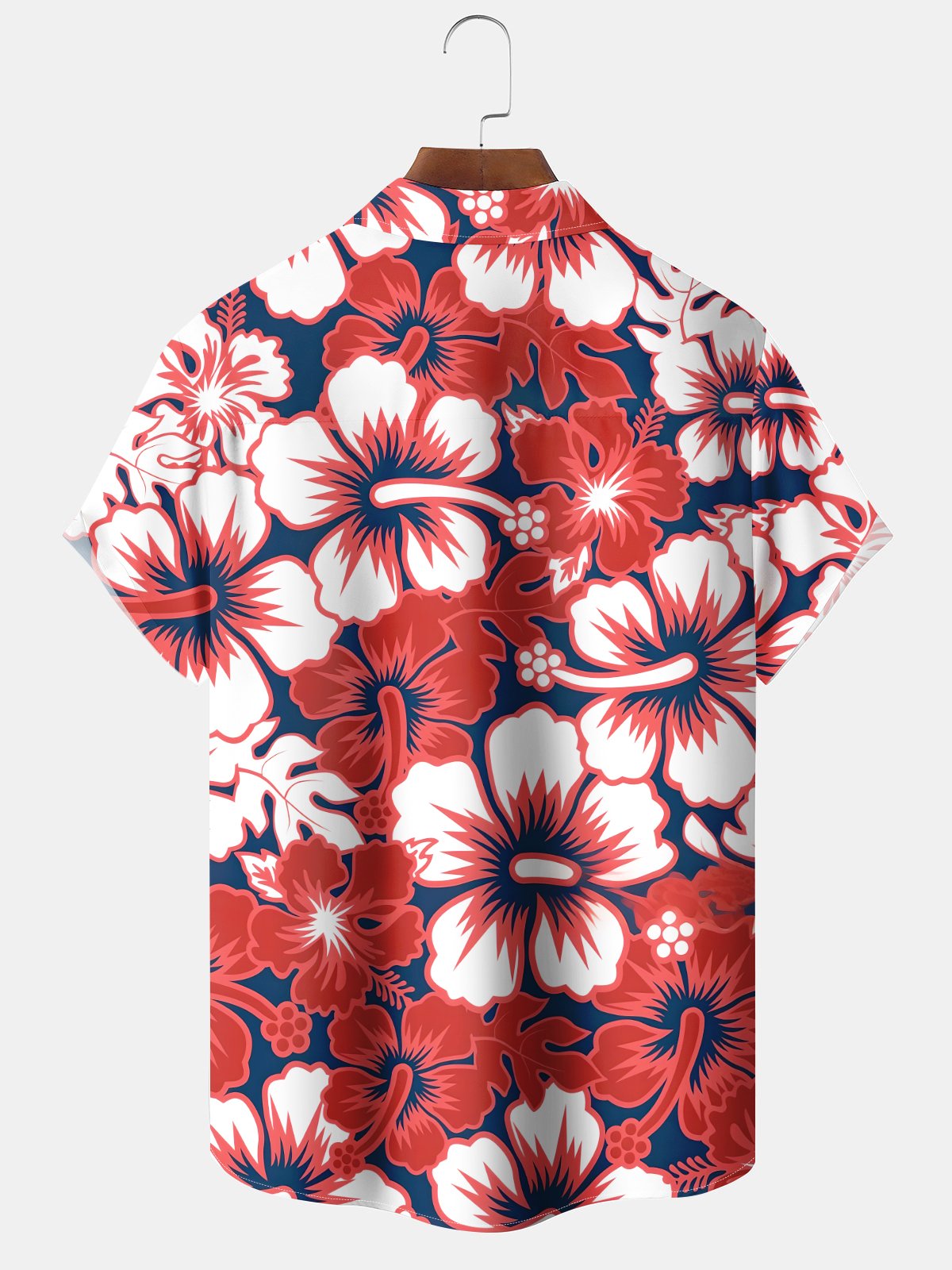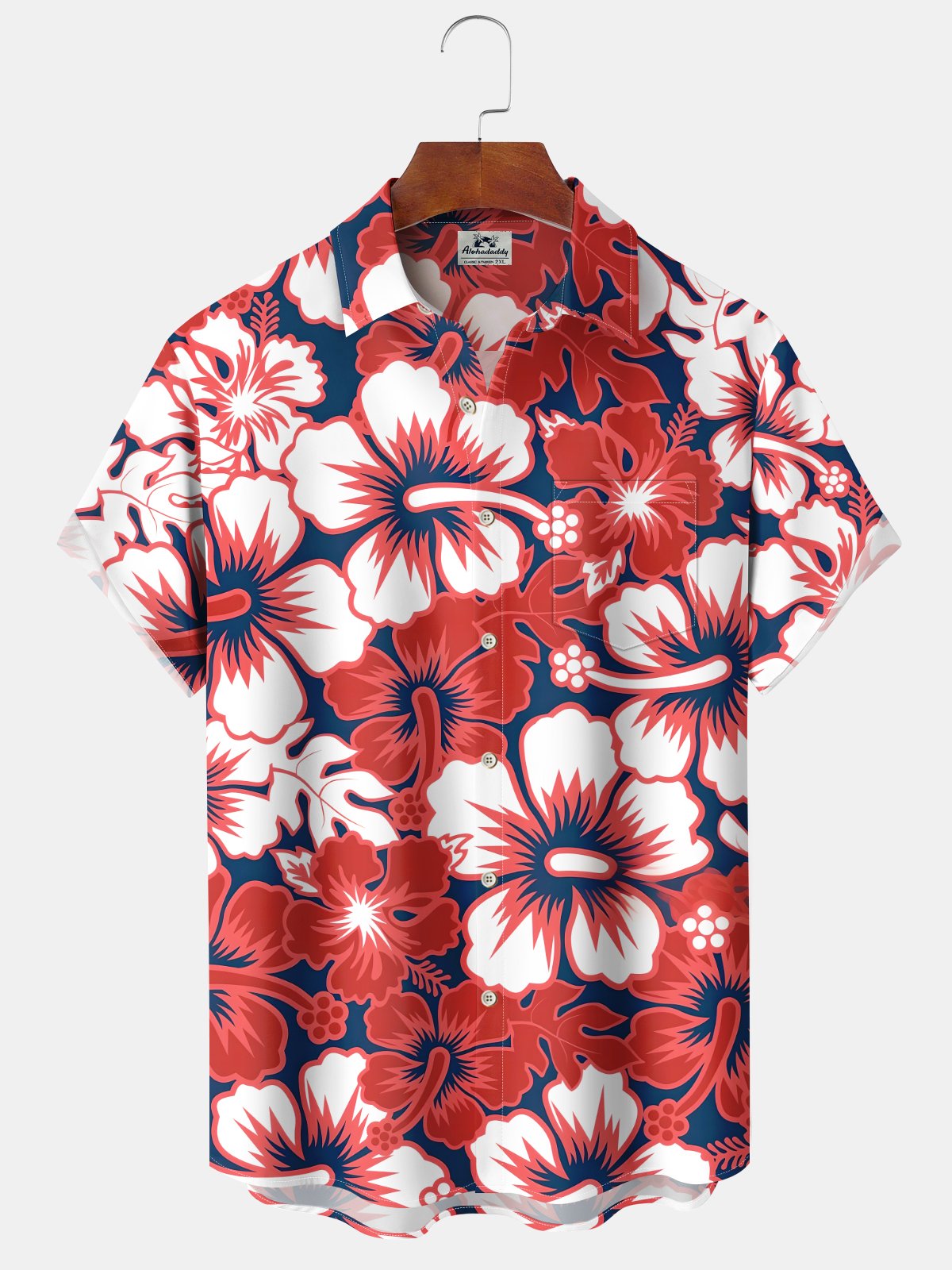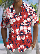 Alohadaddy® Casual Hibiscus Print Chest Pocket Stretch Moisture Wicking Men's Short Sleeve Shirt