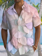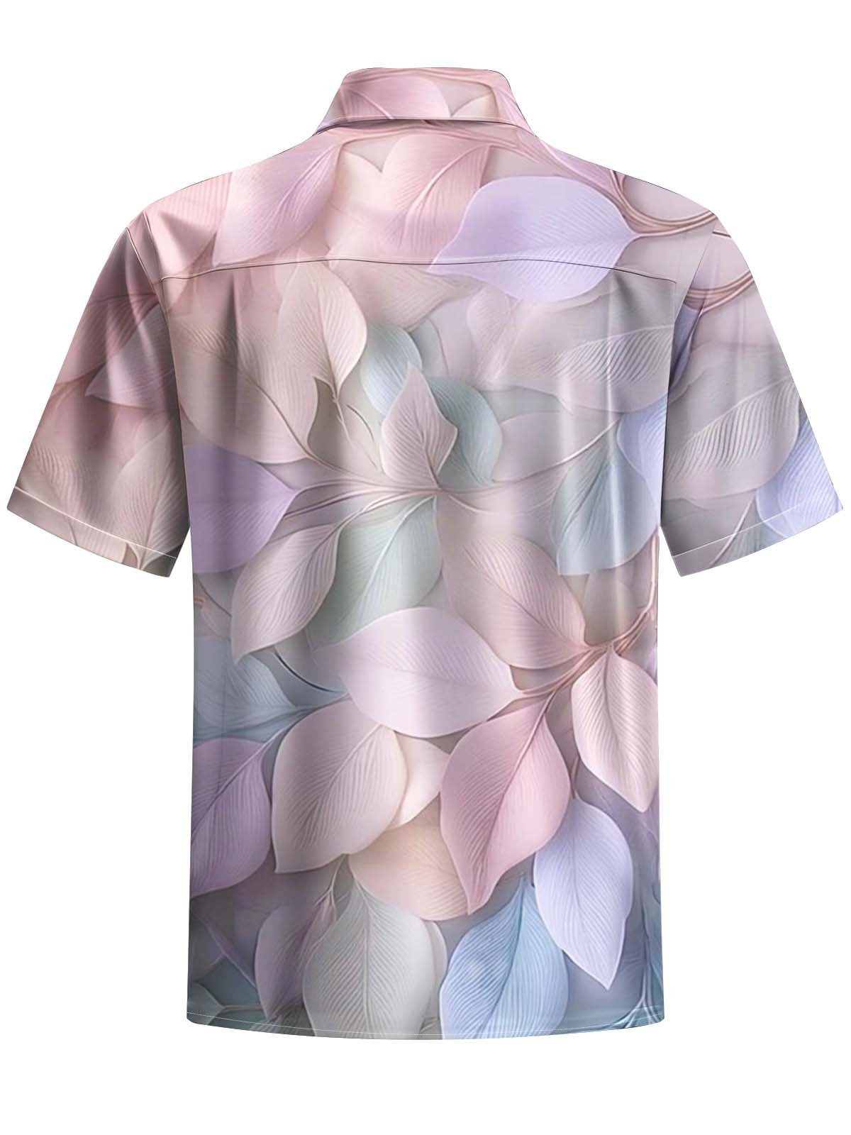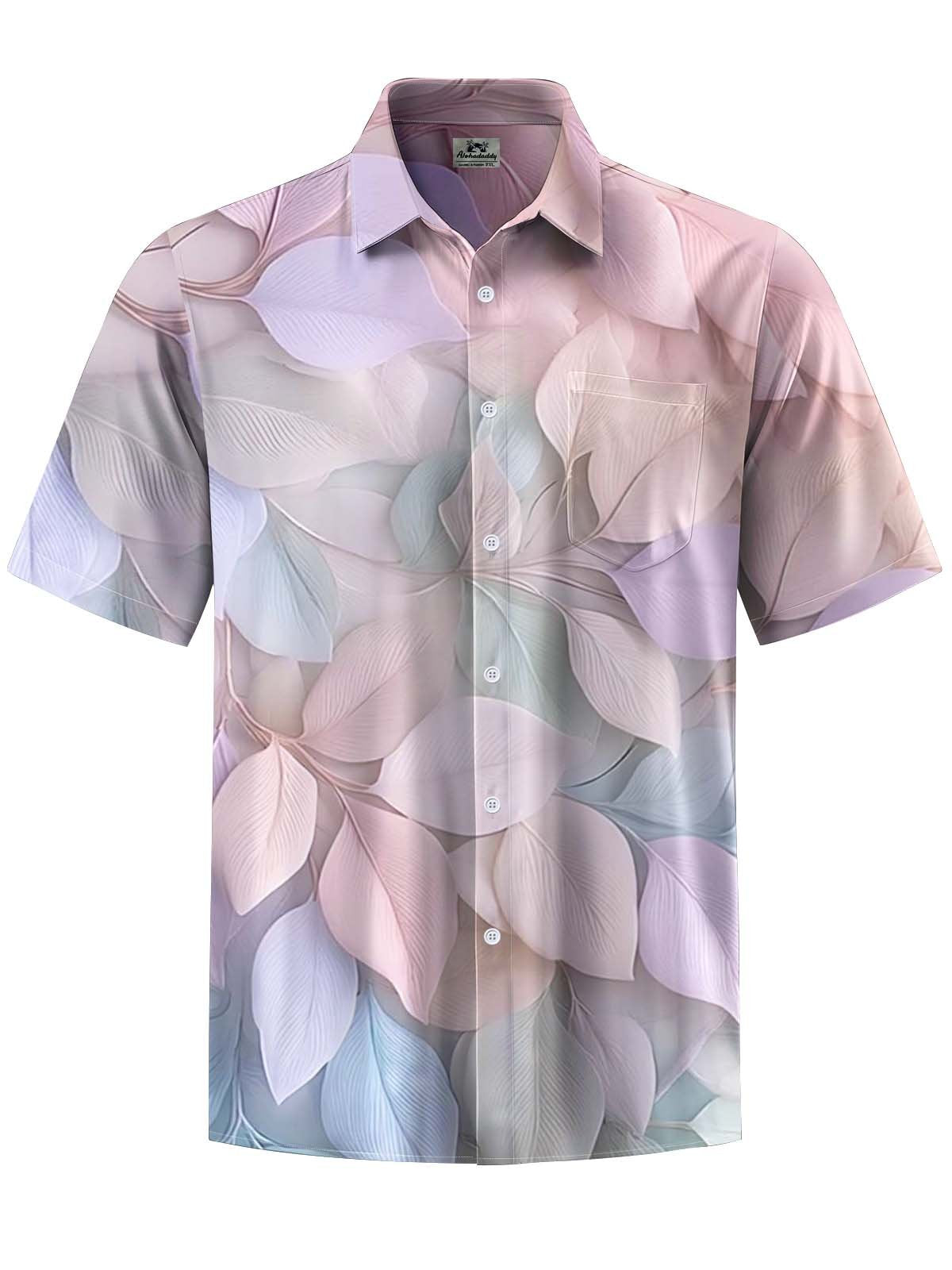 Alohadaddy® Casual Leaves Gradient Print Art Pocket Stretch Men's Short Sleeve Shirt Big & Tall