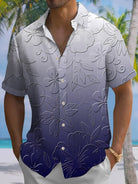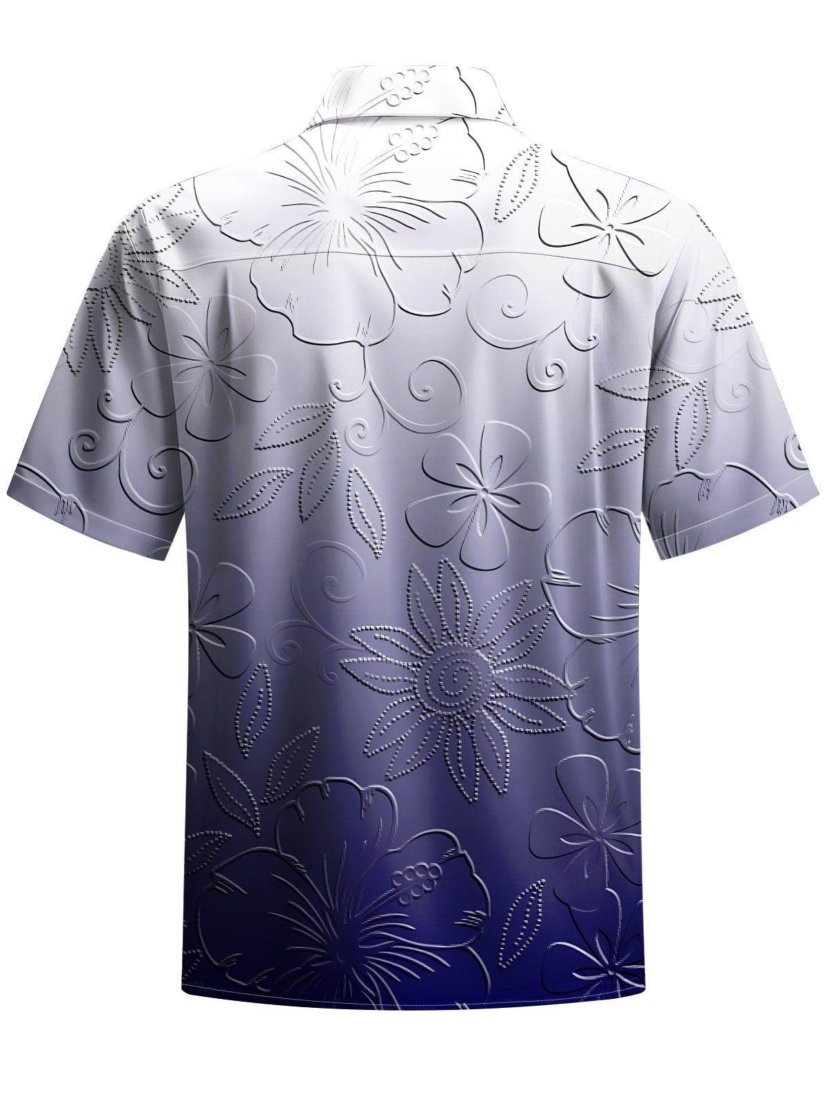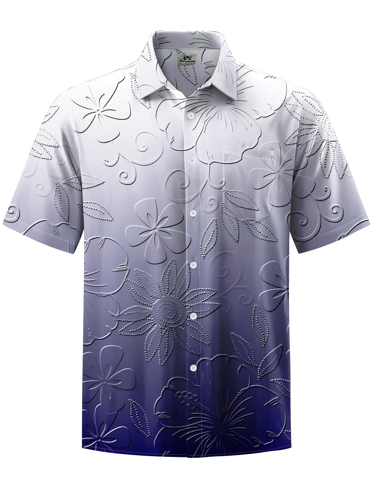 Alohadaddy® Casual Ombre Floral Art Print Chest Pocket Men's Short Sleeve Shirt Big & Tall
