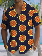 Alohadaddy® Casual Sunflower Art Print Chest Pocket Men's Short Sleeve Shirt Big & Tall
