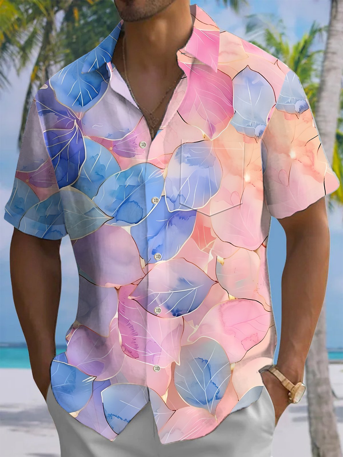 Alohadaddy® Floral Art Pockets Stretch Men's Short Sleeve Shirt Big & Tall