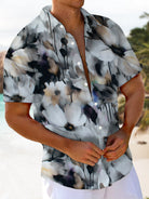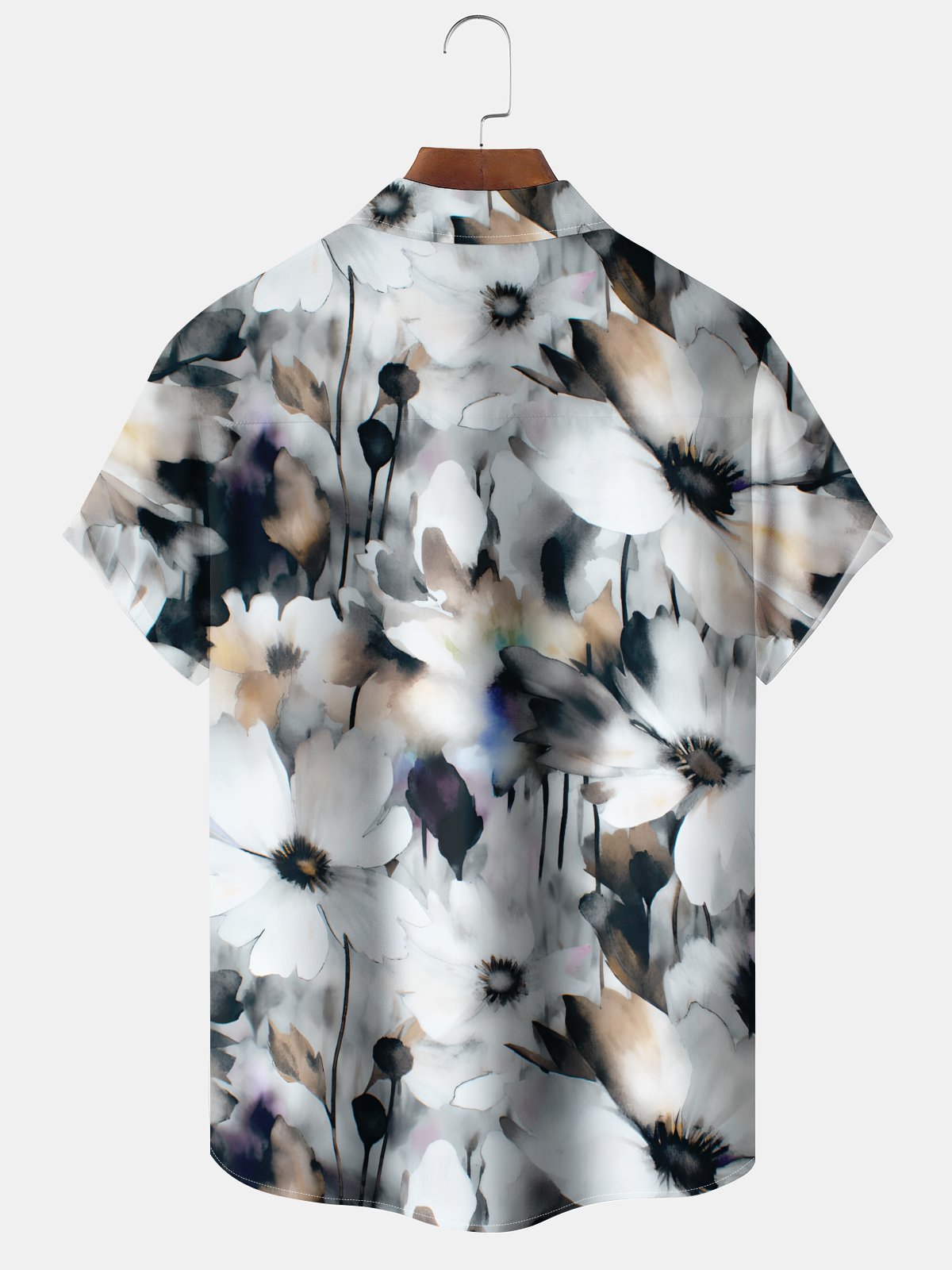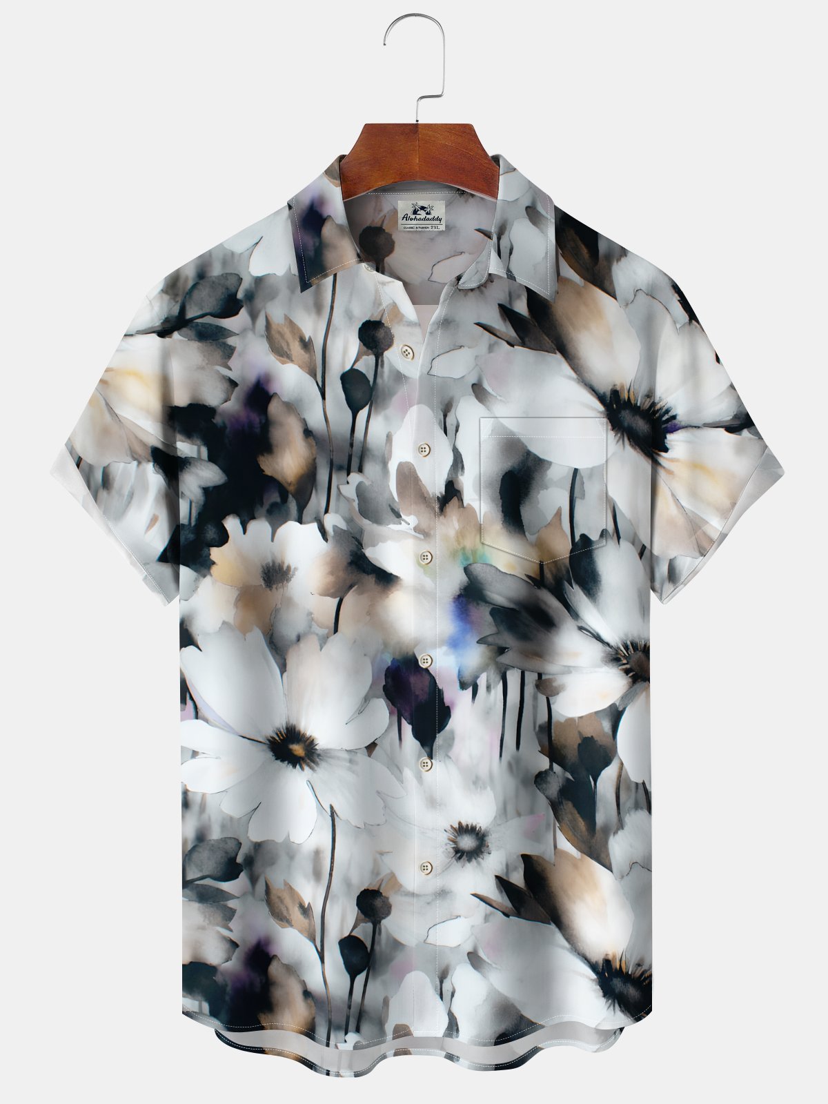 Alohadaddy® Flowers Art Print Pockets Elastic Hawaiian Men's Short Sleeve Shirt Big & Tall