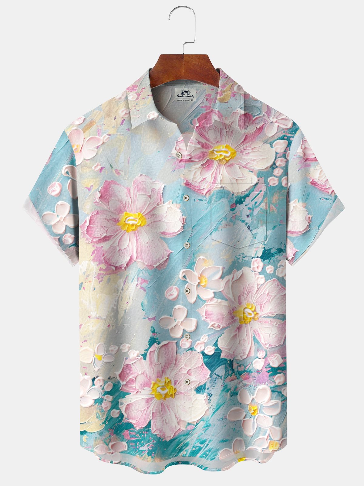 Alohadaddy® Flowers Painting Print Art Pockets Wicking Hawaiian Shirts Big & Tall