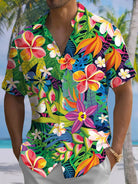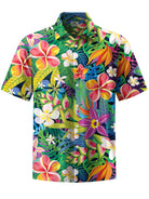 Alohadaddy® Hawaiian Floral Art Print Chest Pocket Men's Short Sleeve Shirt Big & Tall