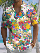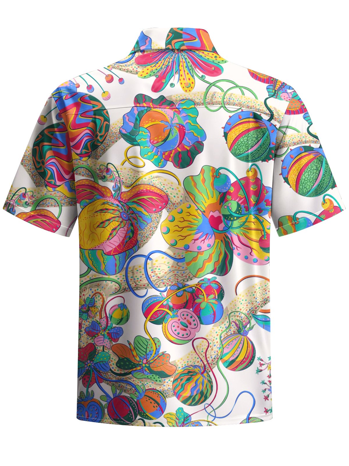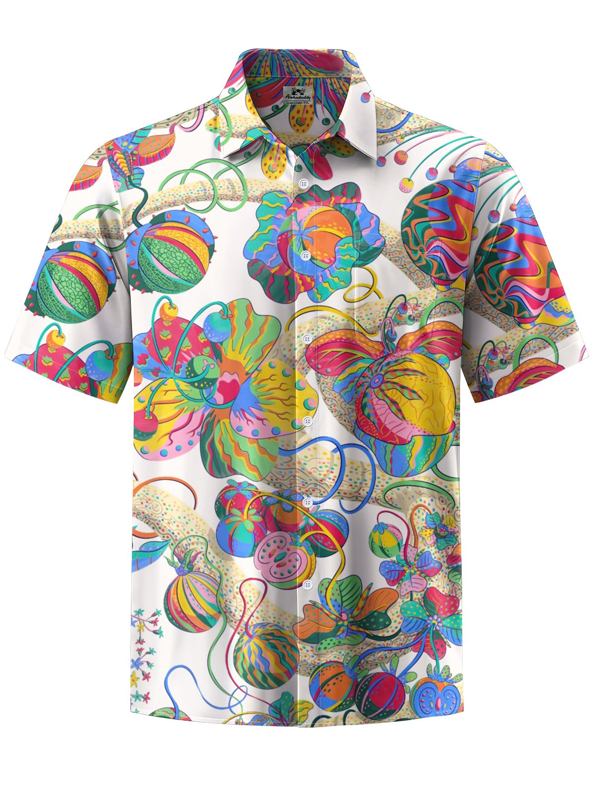 Alohadaddy® Hawaiian Floral Art Print Chest Pocket Men's Short Sleeve Shirt Big & Tall