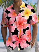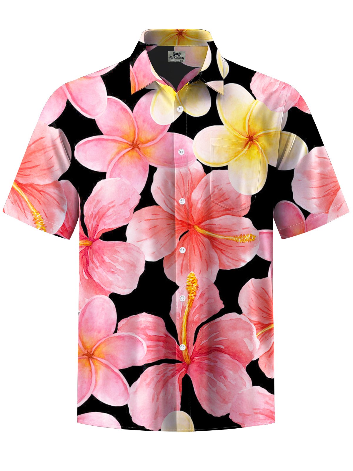Alohadaddy® Hawaiian Floral Art Print Chest Pocket Men's Short Sleeve Shirt Big & Tall