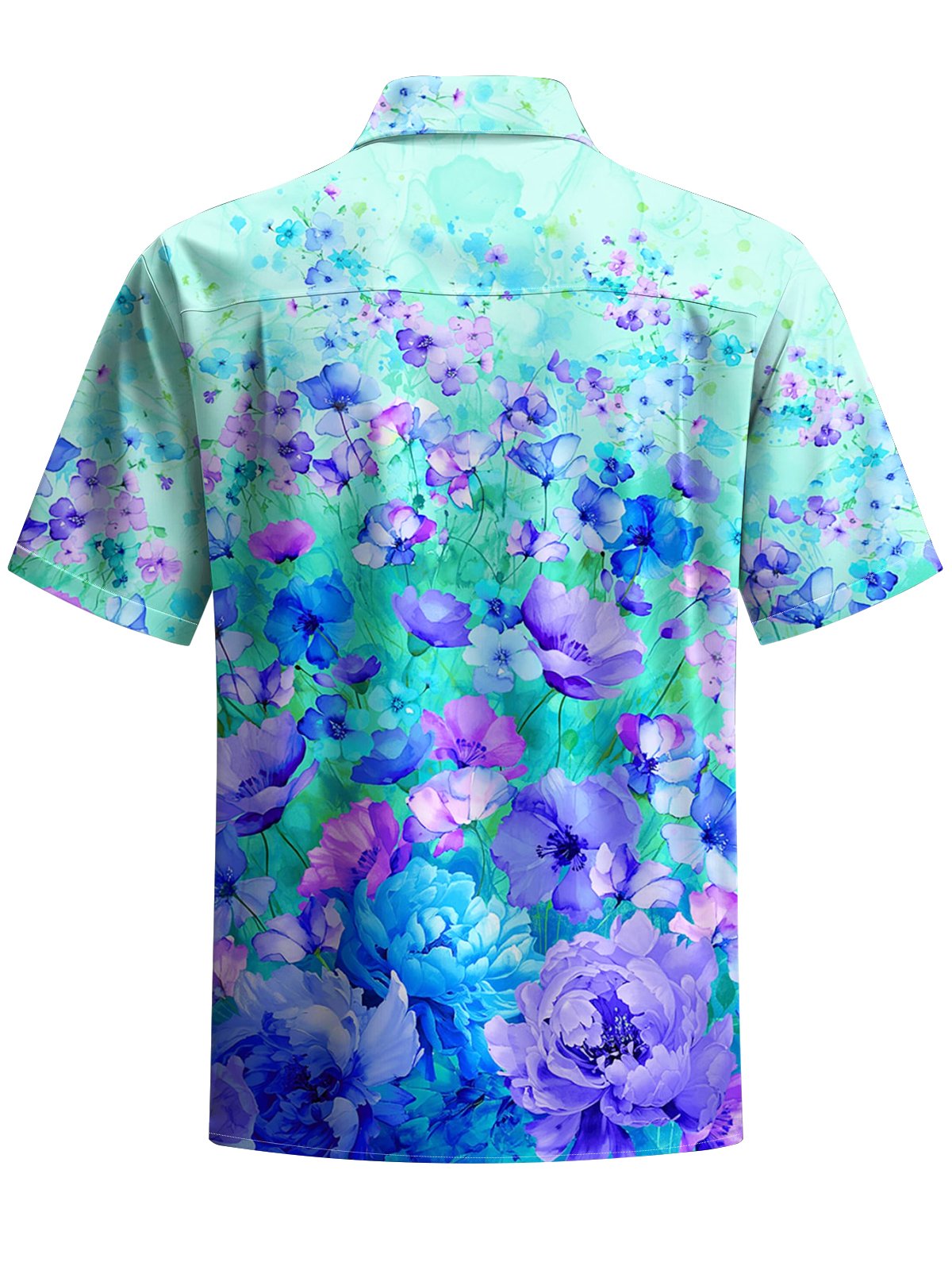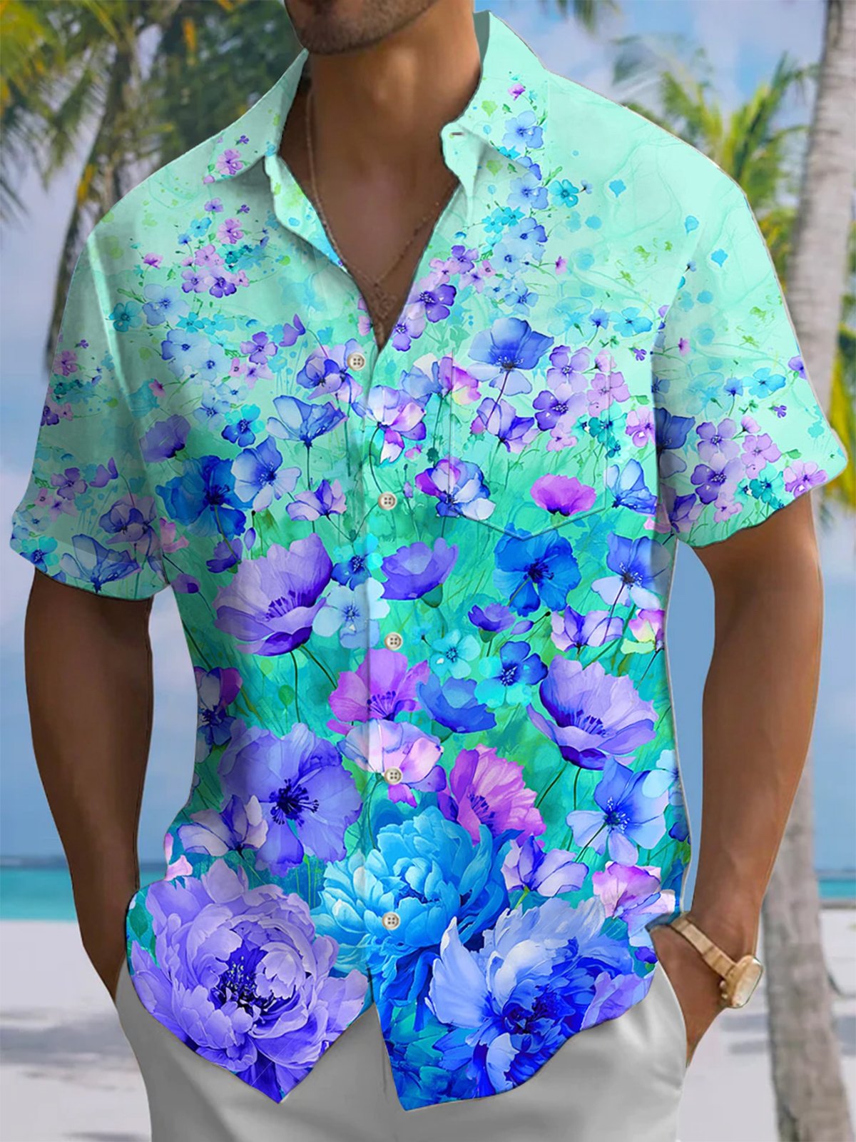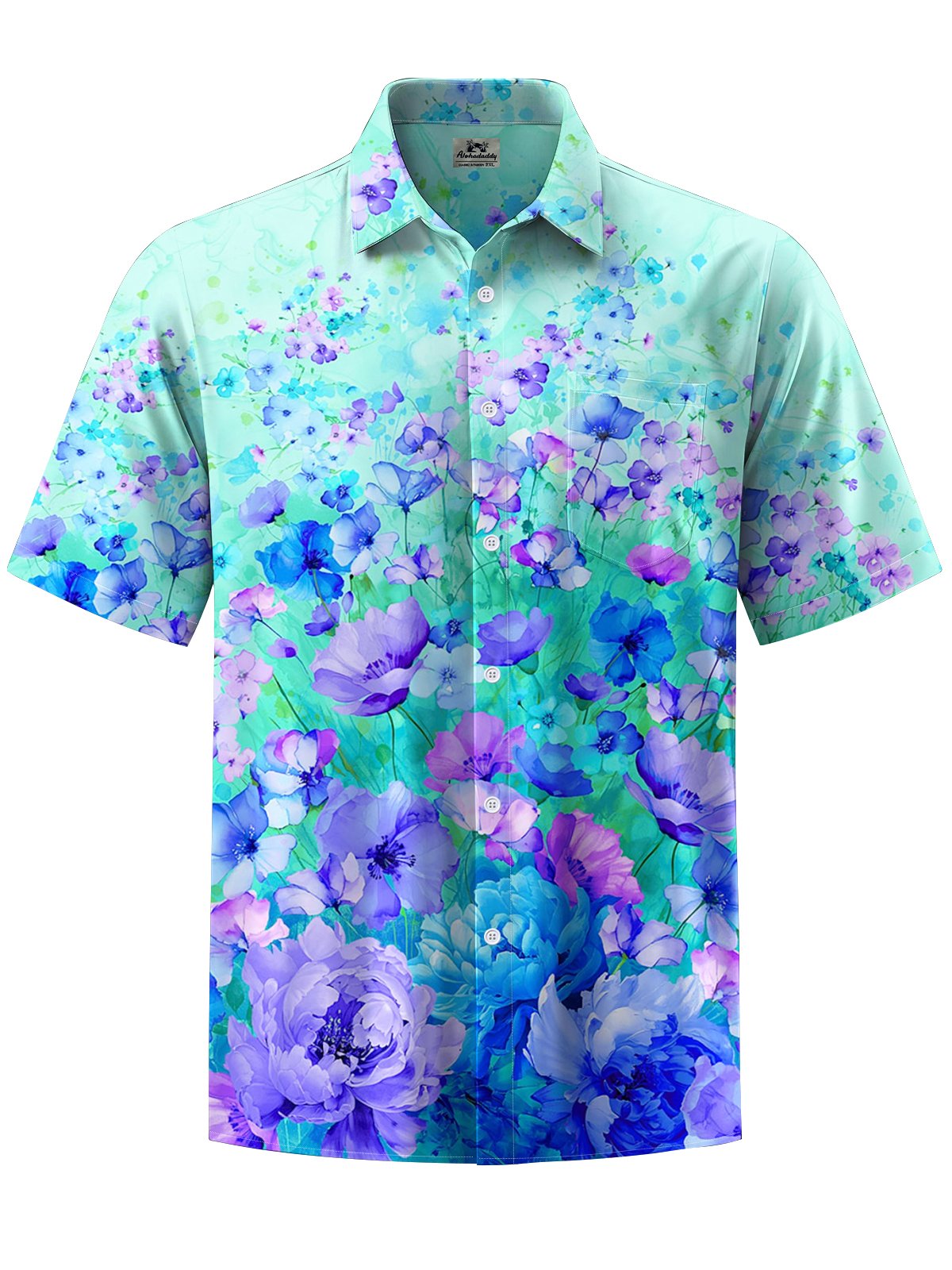 Alohadaddy® Hawaiian Floral Art Print Chest Pocket Men's Short Sleeve Shirt Big & Tall