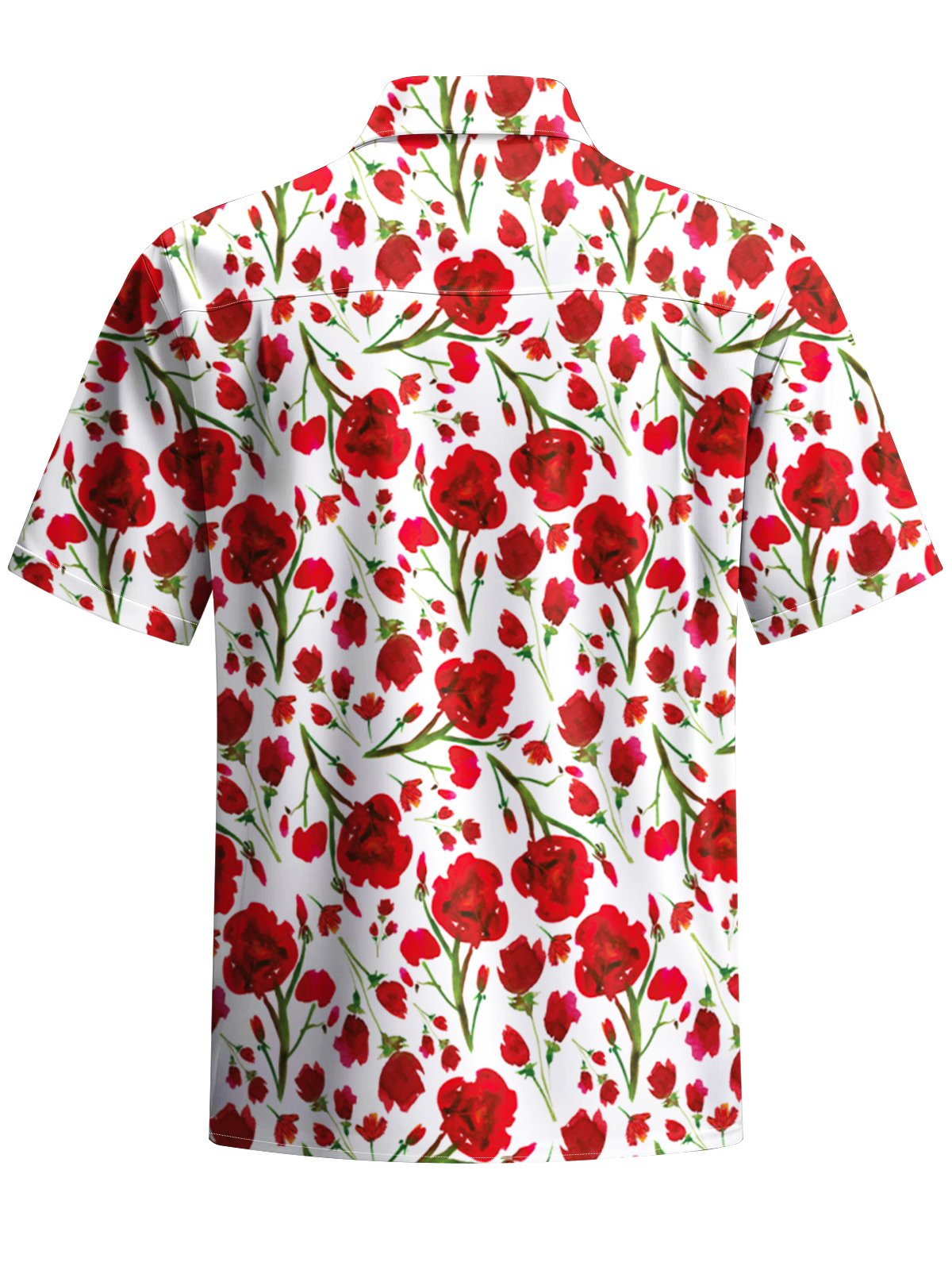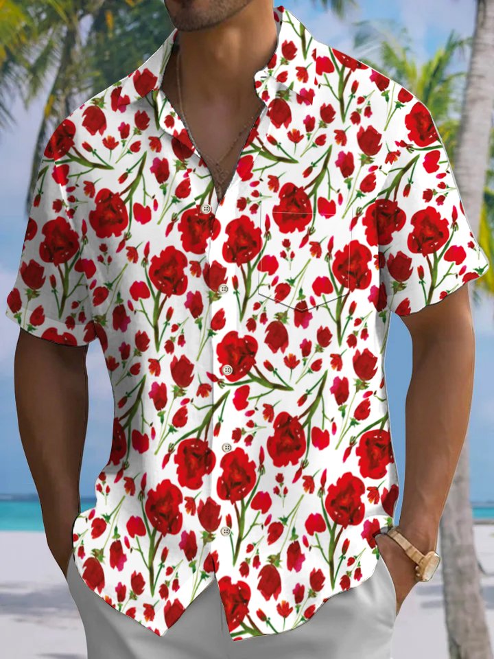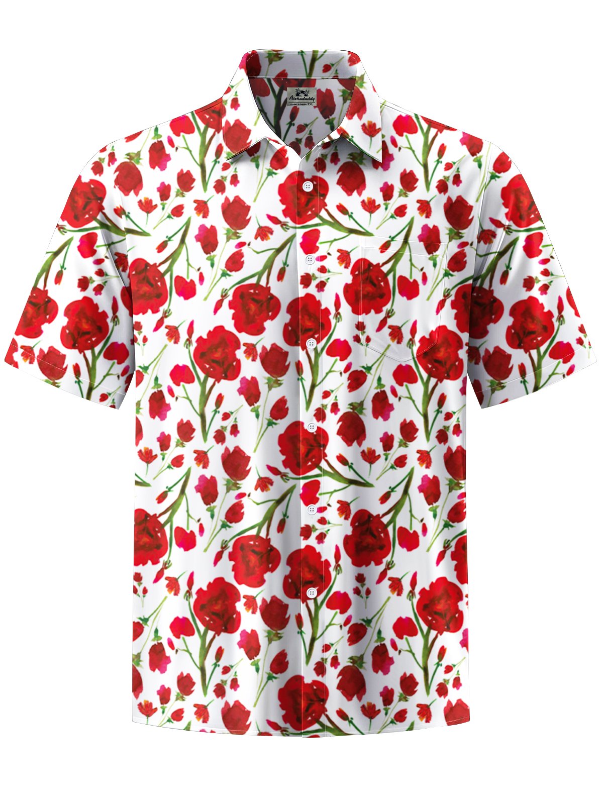 Alohadaddy® Hawaiian Floral Art Print Chest Pocket Men's Short Sleeve Shirt Big & Tall