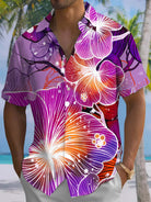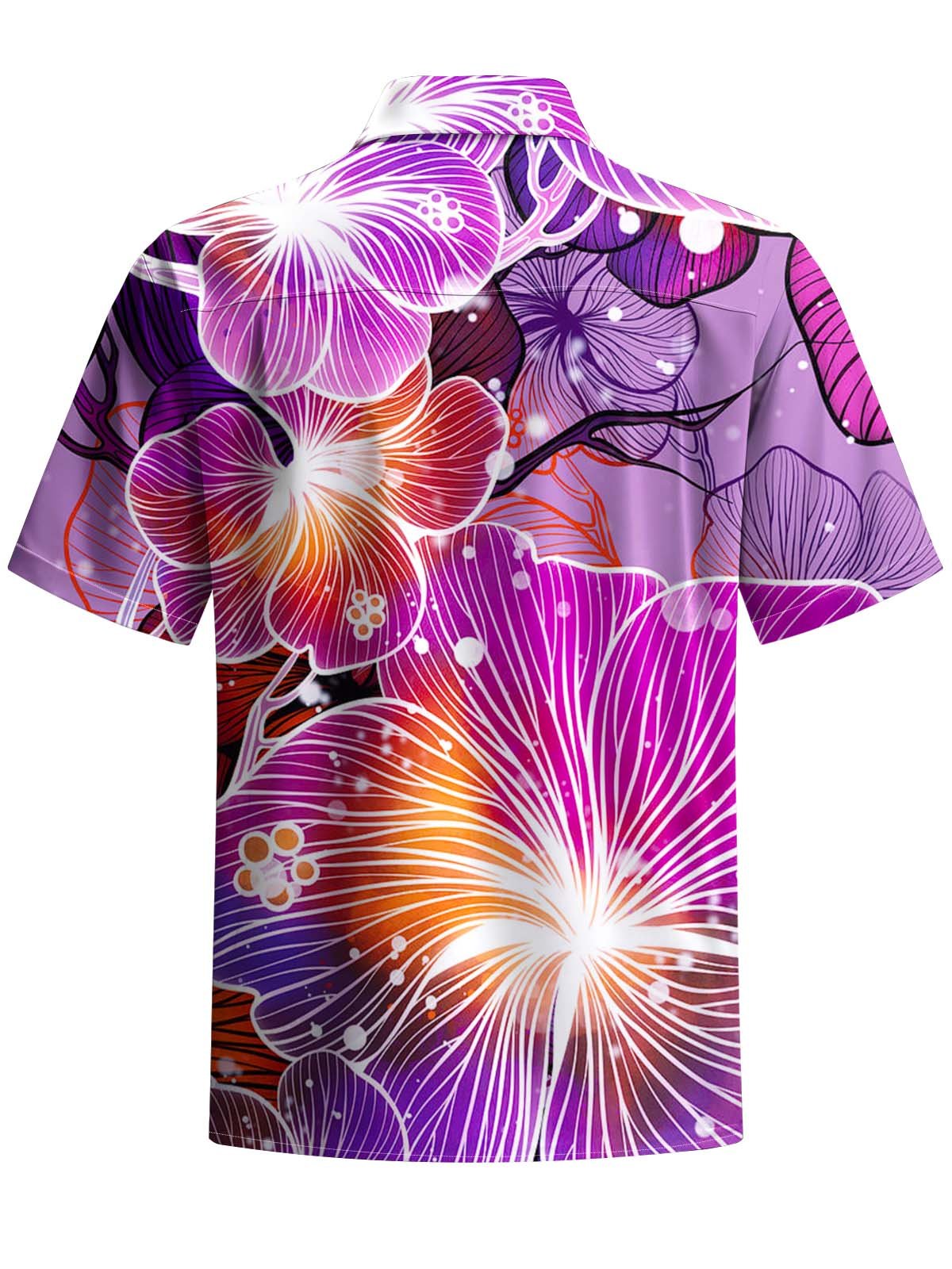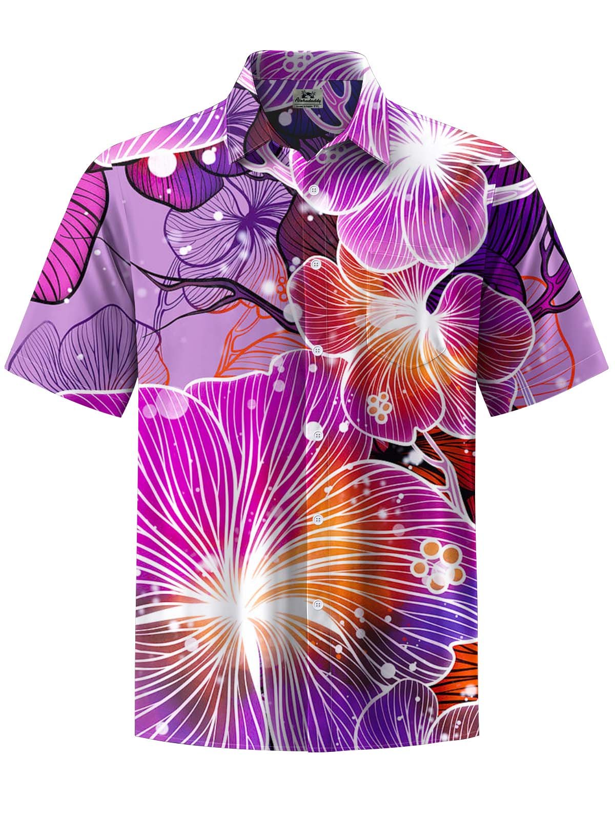 Alohadaddy® Hawaiian Floral Art Print Chest Pocket Stretch Men's Short Sleeve Shirt Big & Tall