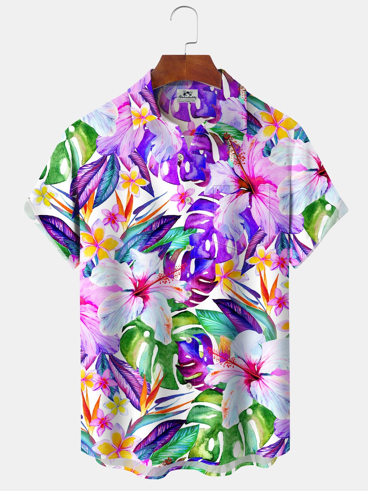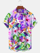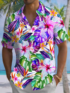 Alohadaddy® Hawaiian Floral Art Print Pockets Moisture Wicking Oversized Stretch Shirt