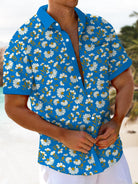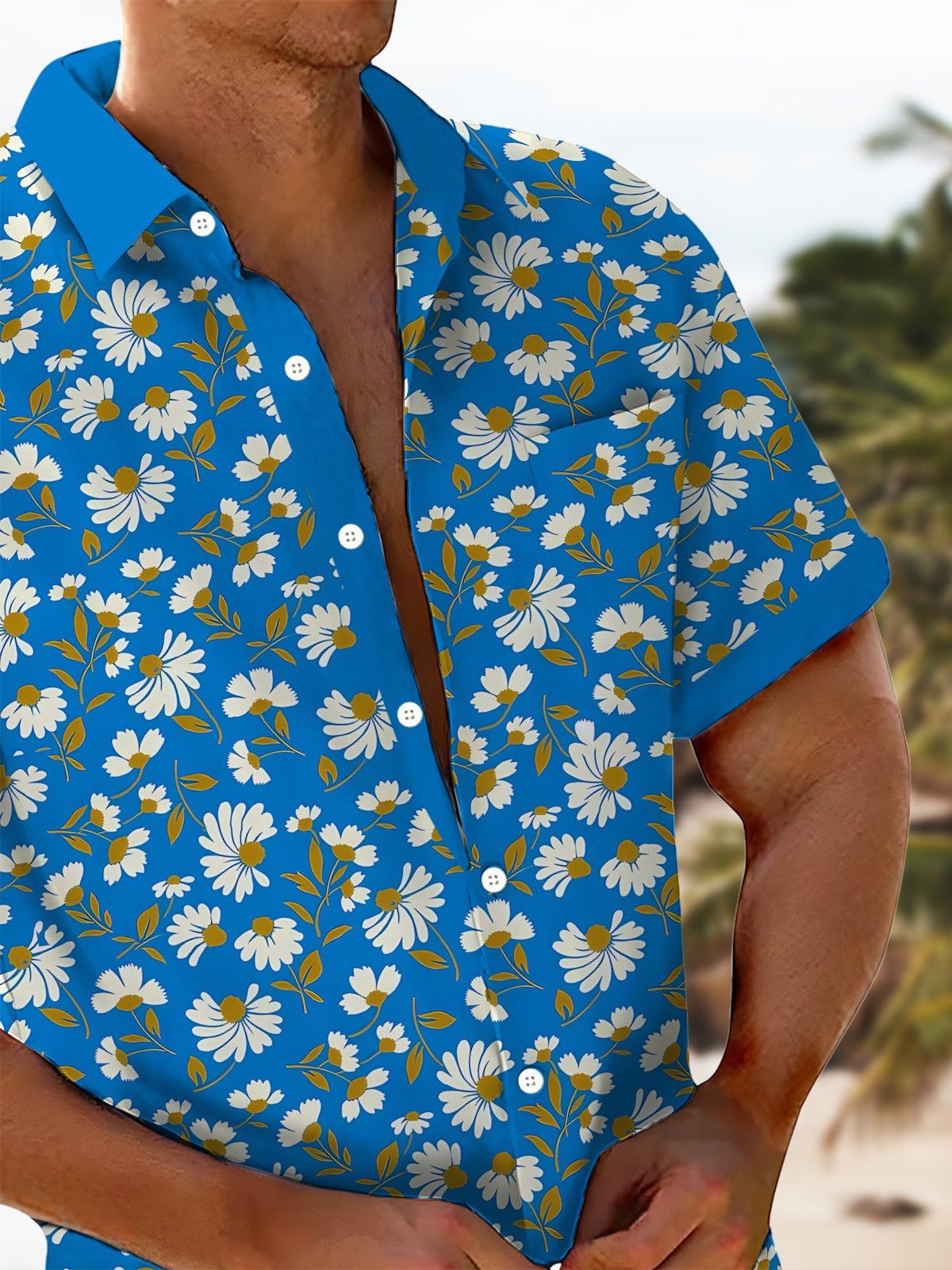 Alohadaddy® Hawaiian Floral Contrast Art Print Chest Pocket Men's Stretch Short Sleeve Shirt Big & Tall
