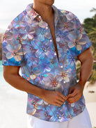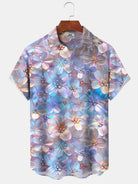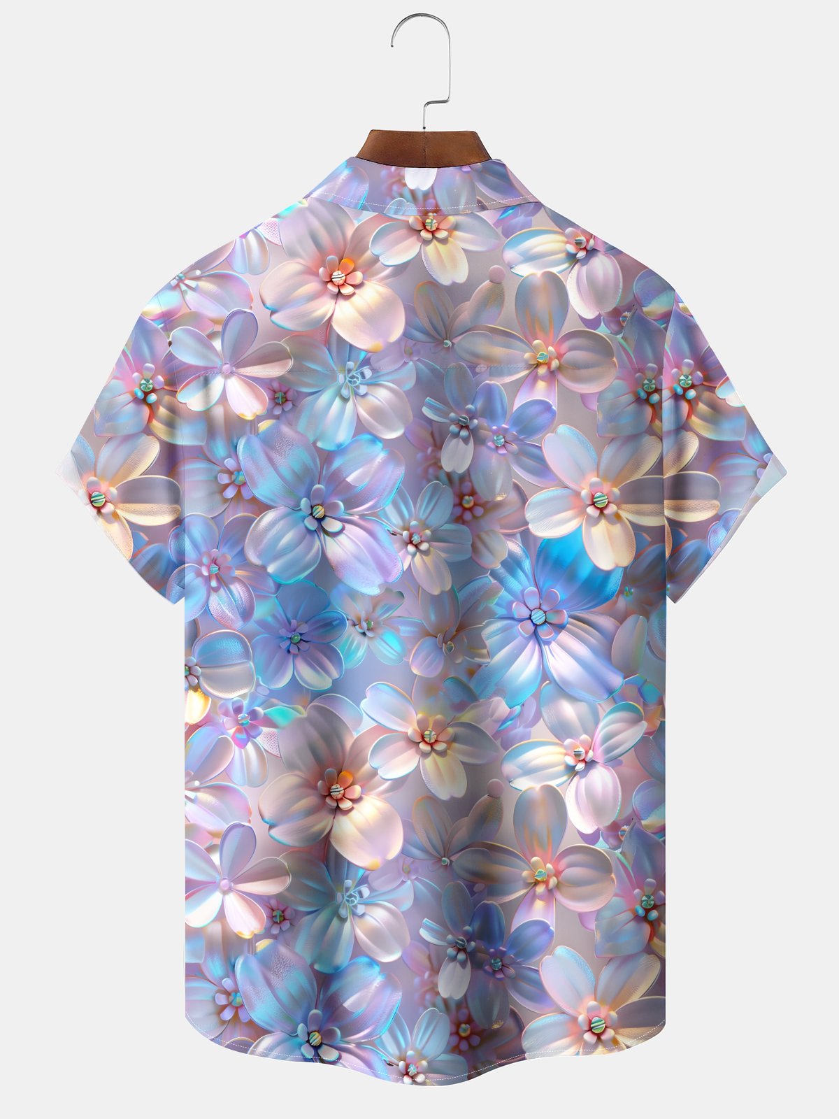 Alohadaddy® Hawaiian Floral Print Chest Pocket Stretch Moisture Wicking Men's Short Sleeve Shirt