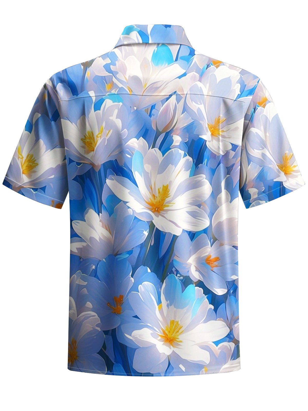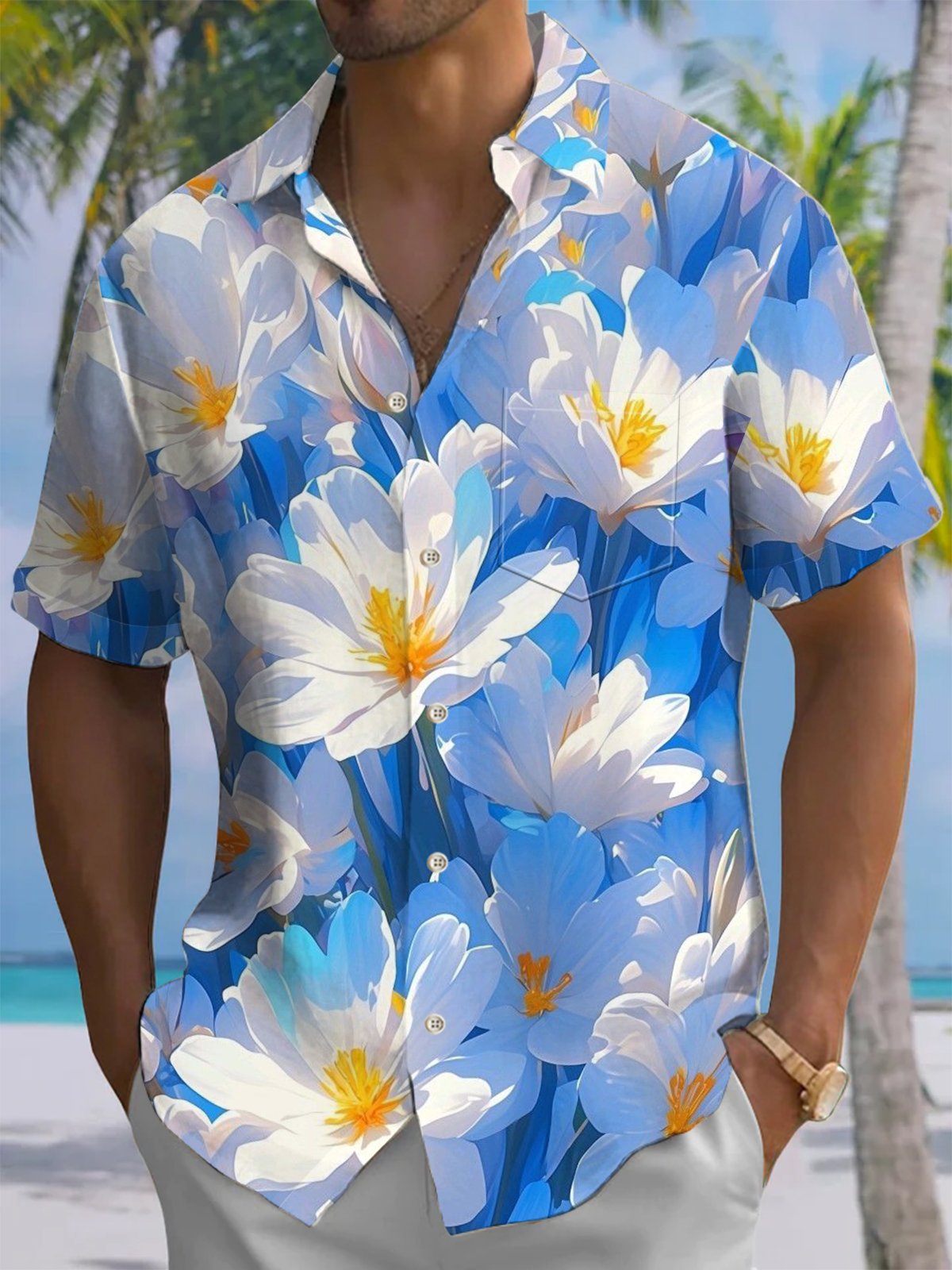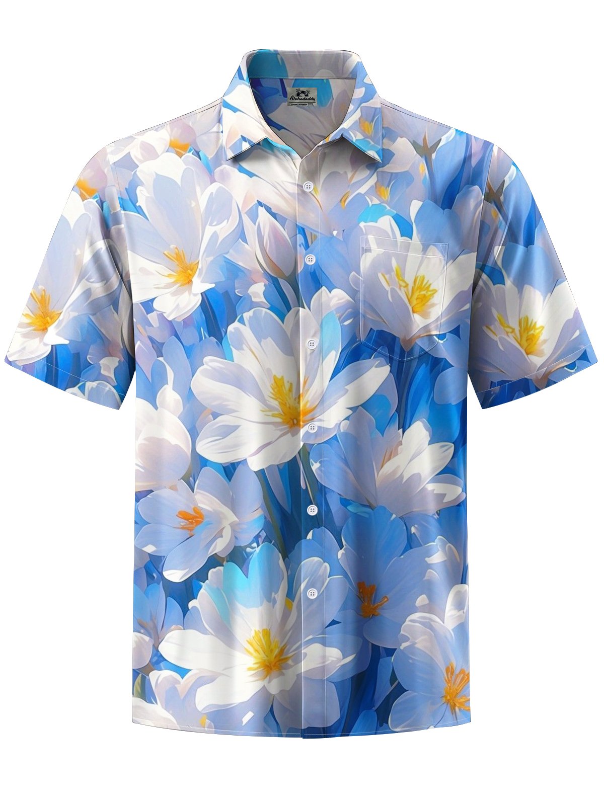Alohadaddy® Hawaiian floral print with chest pocket for men's short-sleeved stretch shirt Big & Tall