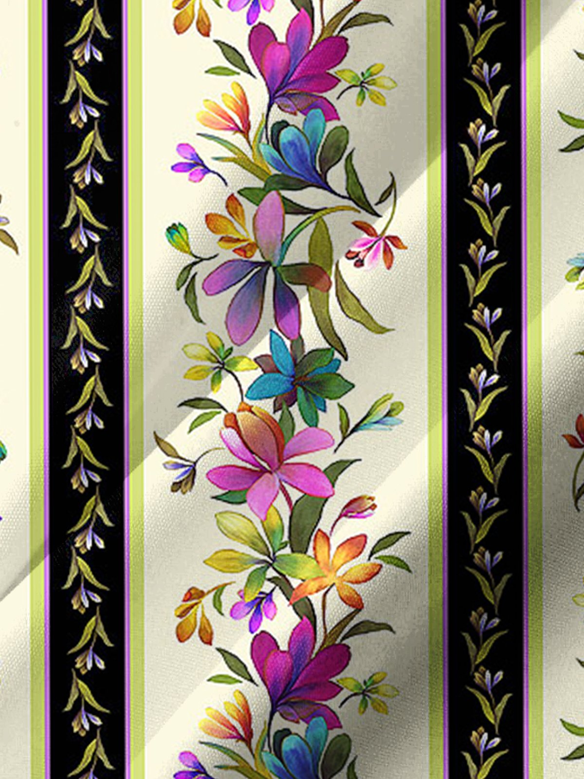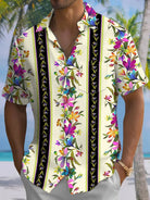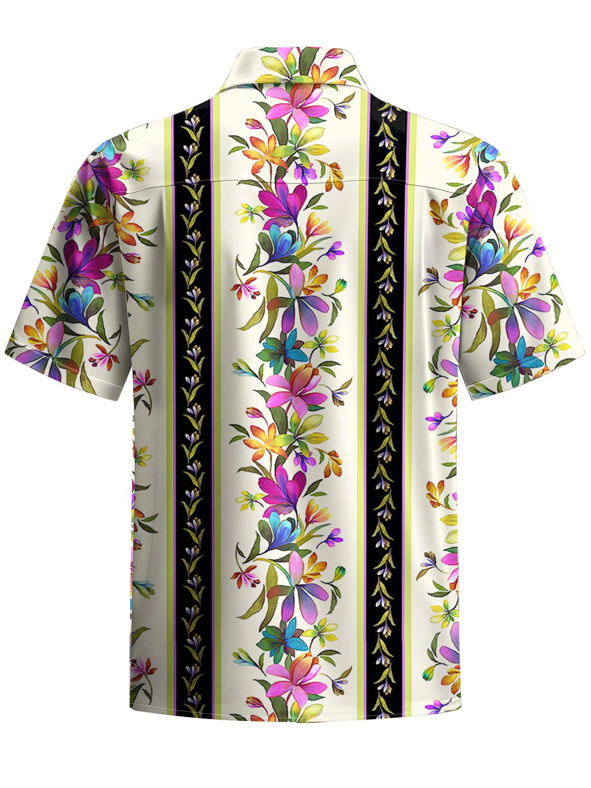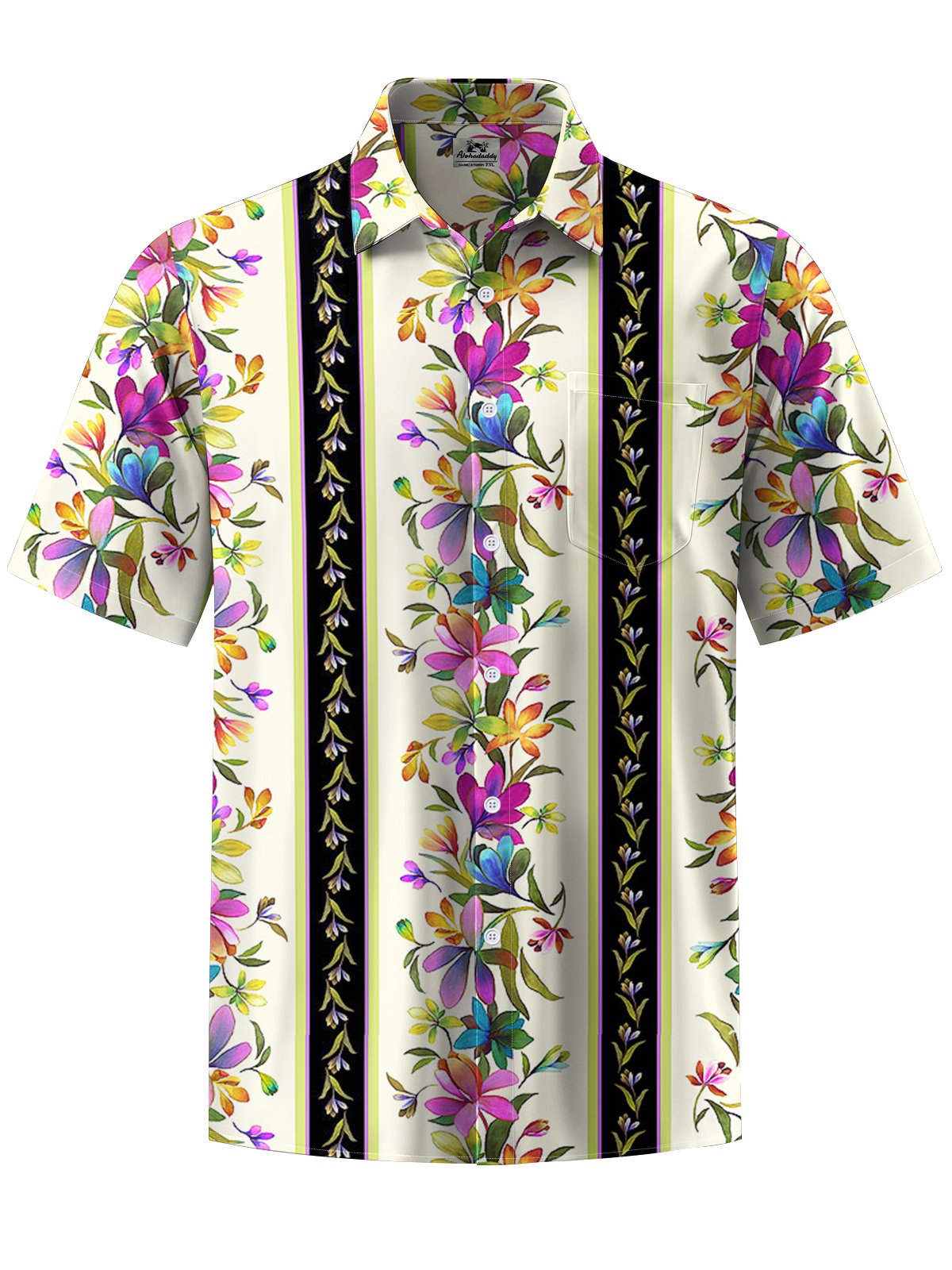 Alohadaddy® Hawaiian Floral Stripe Art Print Chest Pocket Men's Short Sleeve Shirt Big & Tall