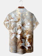 Alohadaddy® Hawaiian Flower Art Print Pockets Moisture Wicking Oversized Stretch Shirt