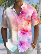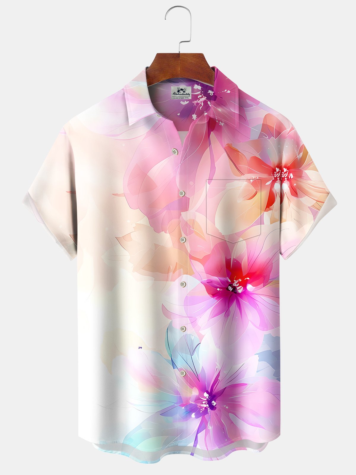 Alohadaddy® Hawaiian Flower Art Print Pockets Moisture Wicking Oversized Stretch Shirt