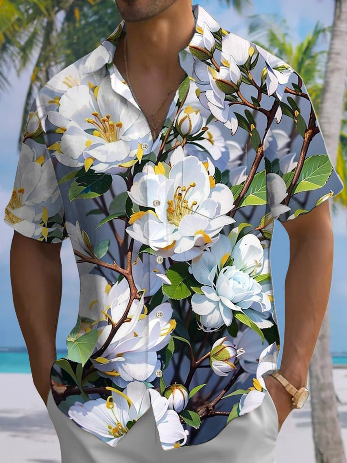 Alohadaddy® Hawaiian Flowers Art Print Moisture Wicking Men's Short Sleeve Shirt Big & Tall