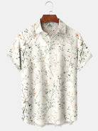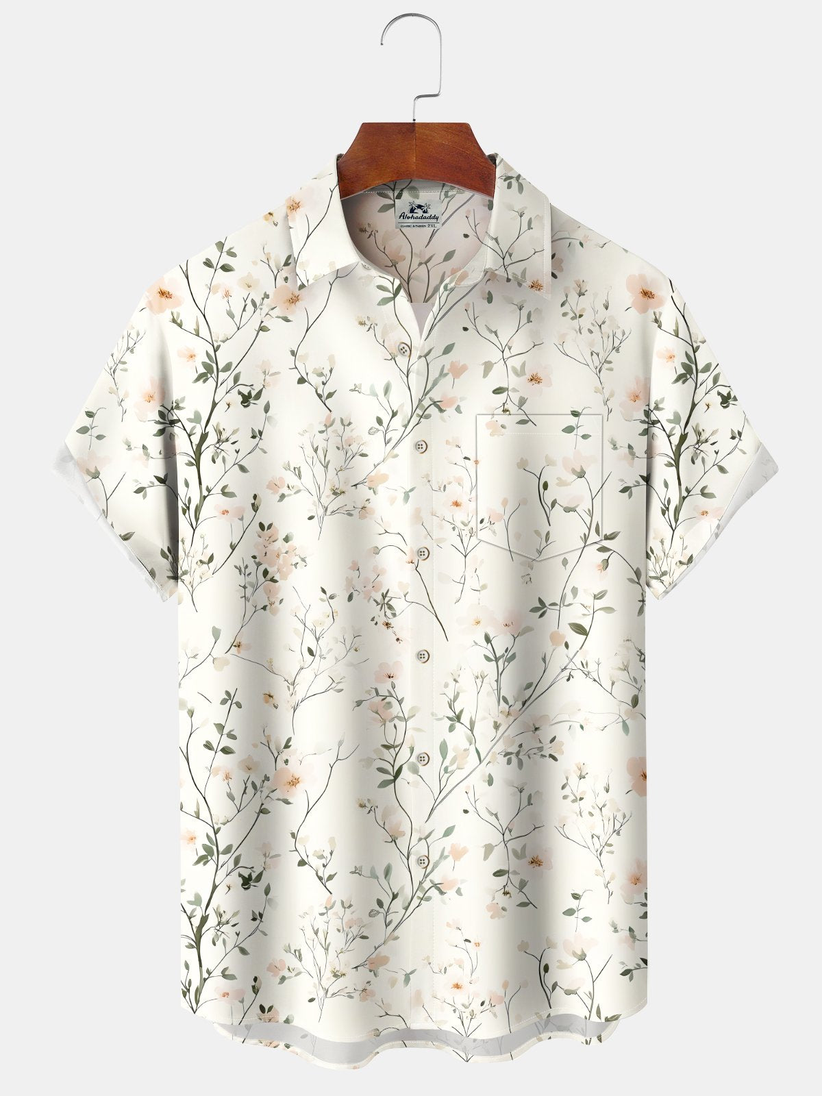 Alohadaddy® Hawaiian Flowers Art Print Pockets Stretch Men's Short Sleeve Shirt Big & Tall