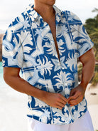 Alohadaddy® Hawaiian Geometric Art Print Chest Pocket Stretch Men's Short Sleeve Shirt Big & Tall