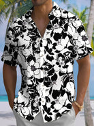 Alohadaddy® Hawaiian Hibiscus Flower Art Print Chest Pocket Men's Short Sleeve Shirt Big & Tall