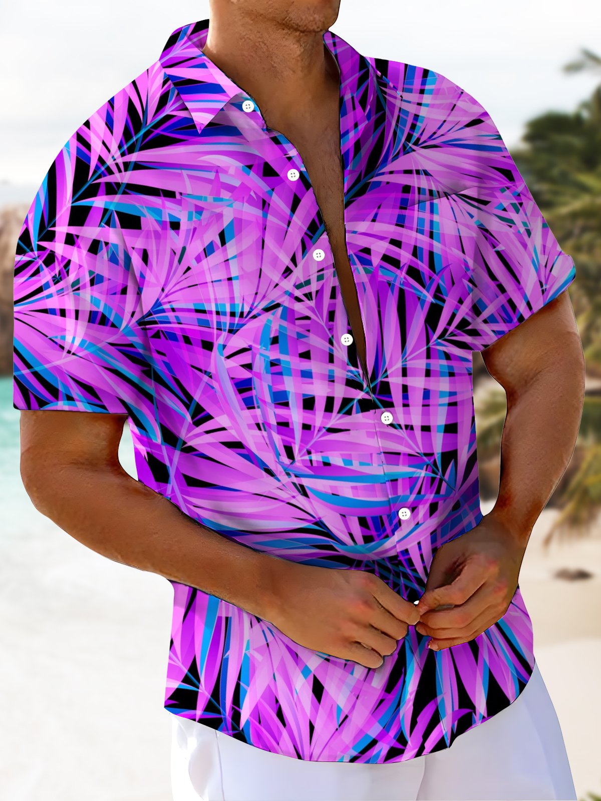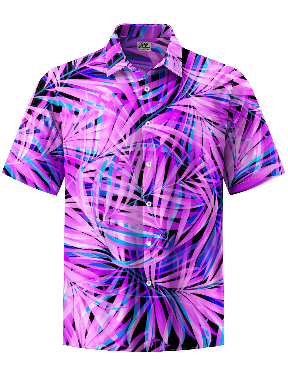 Alohadaddy® Hawaiian Leaves Art Print Moisture Wicking Men's Short Sleeve Shirt Big & Tall