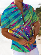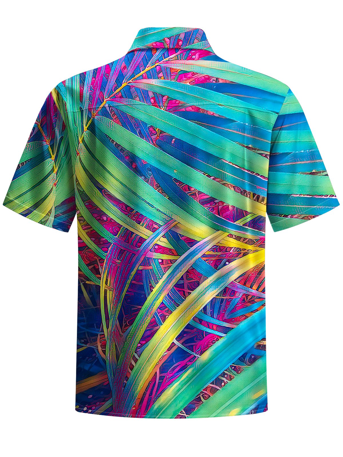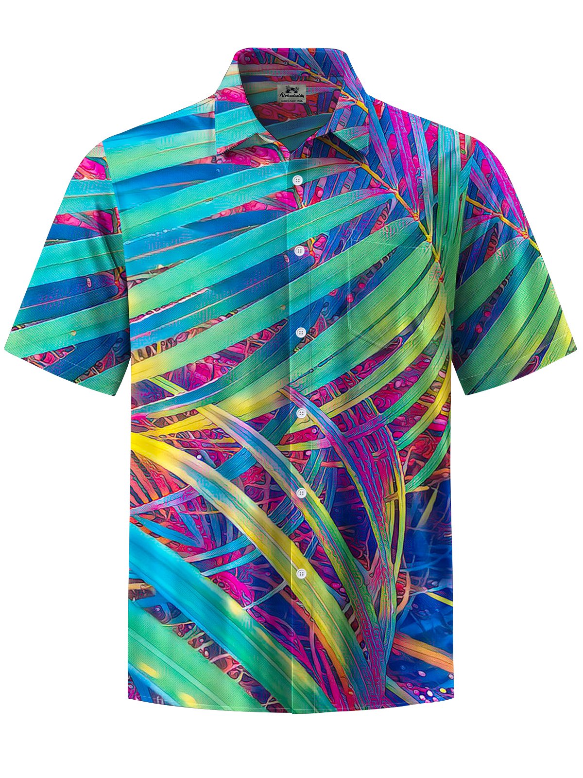 Alohadaddy® Hawaiian Palm Leaf Art Print Chest Pocket Men's Stretch Short Sleeve Shirt Big & Tall