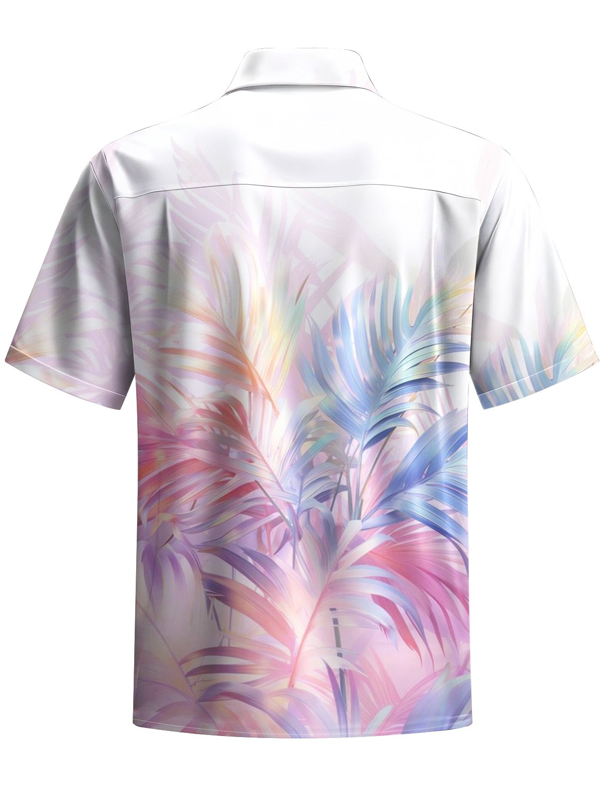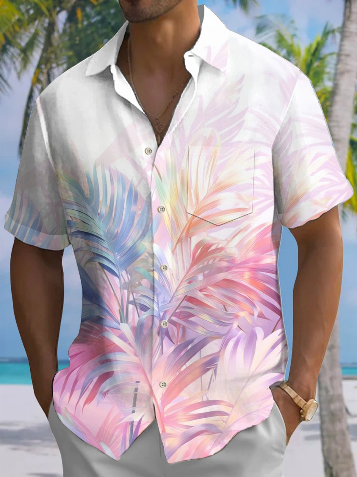 Alohadaddy® Hawaiian Palm Leaf Art Print Chest Pocket Men's Stretch Short Sleeve Shirt Big & Tall