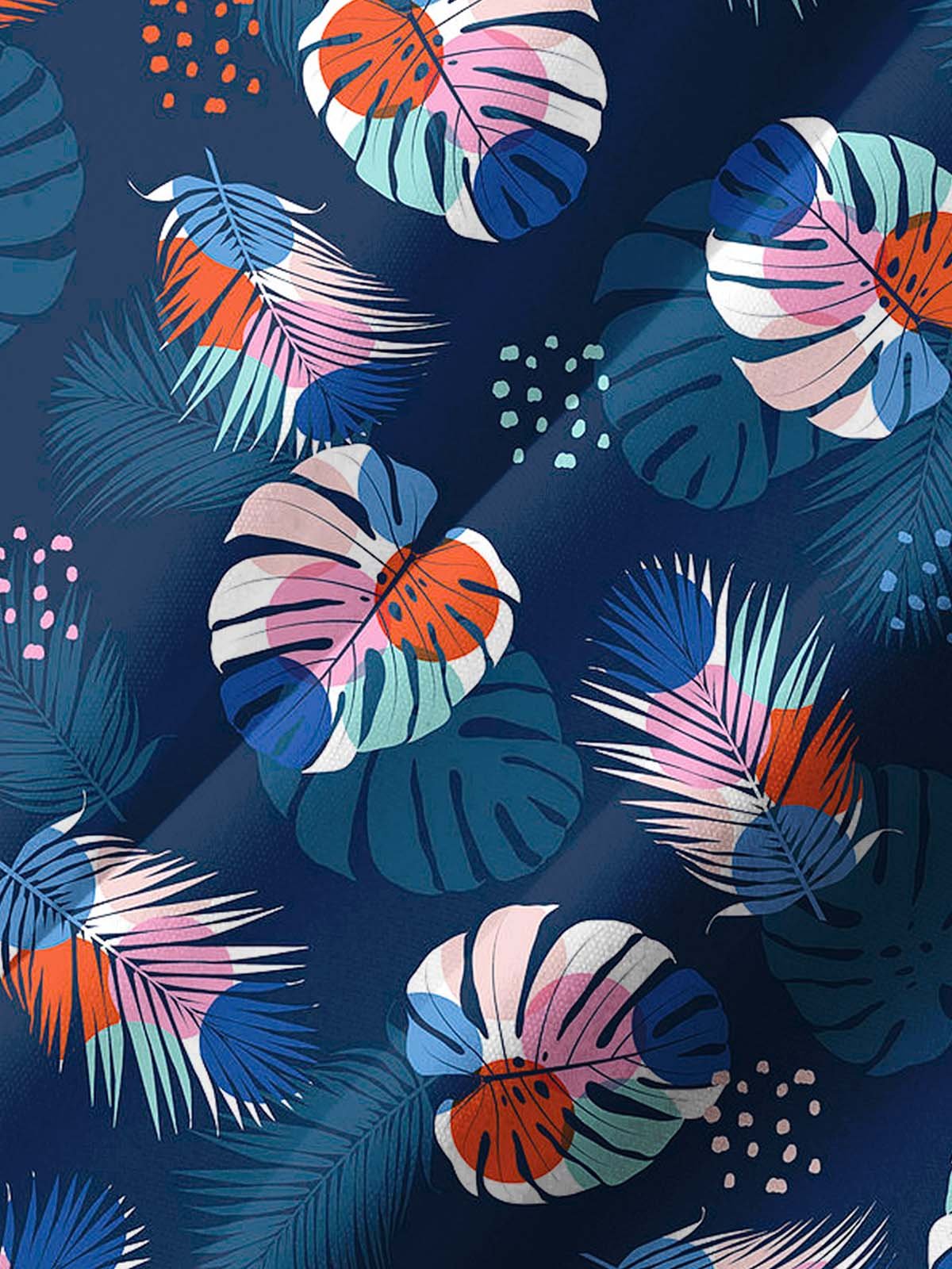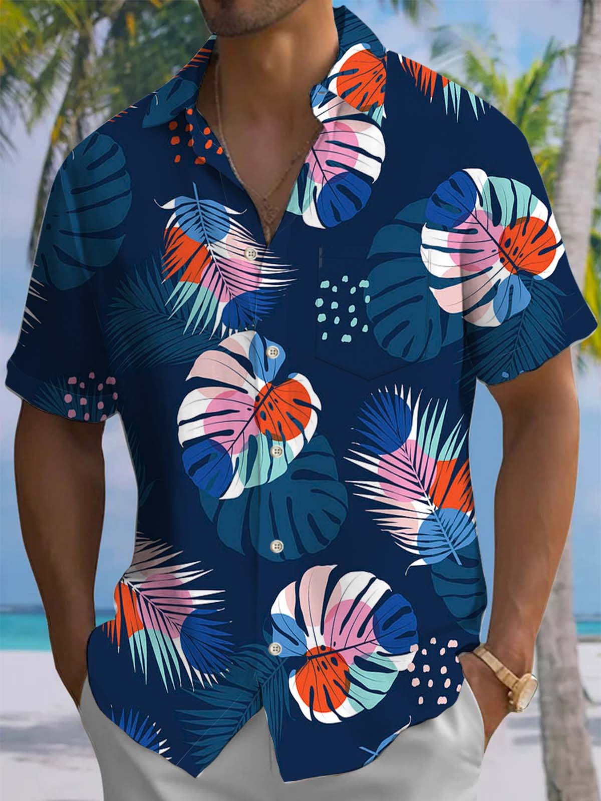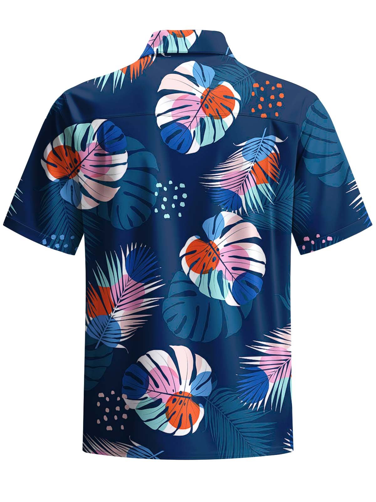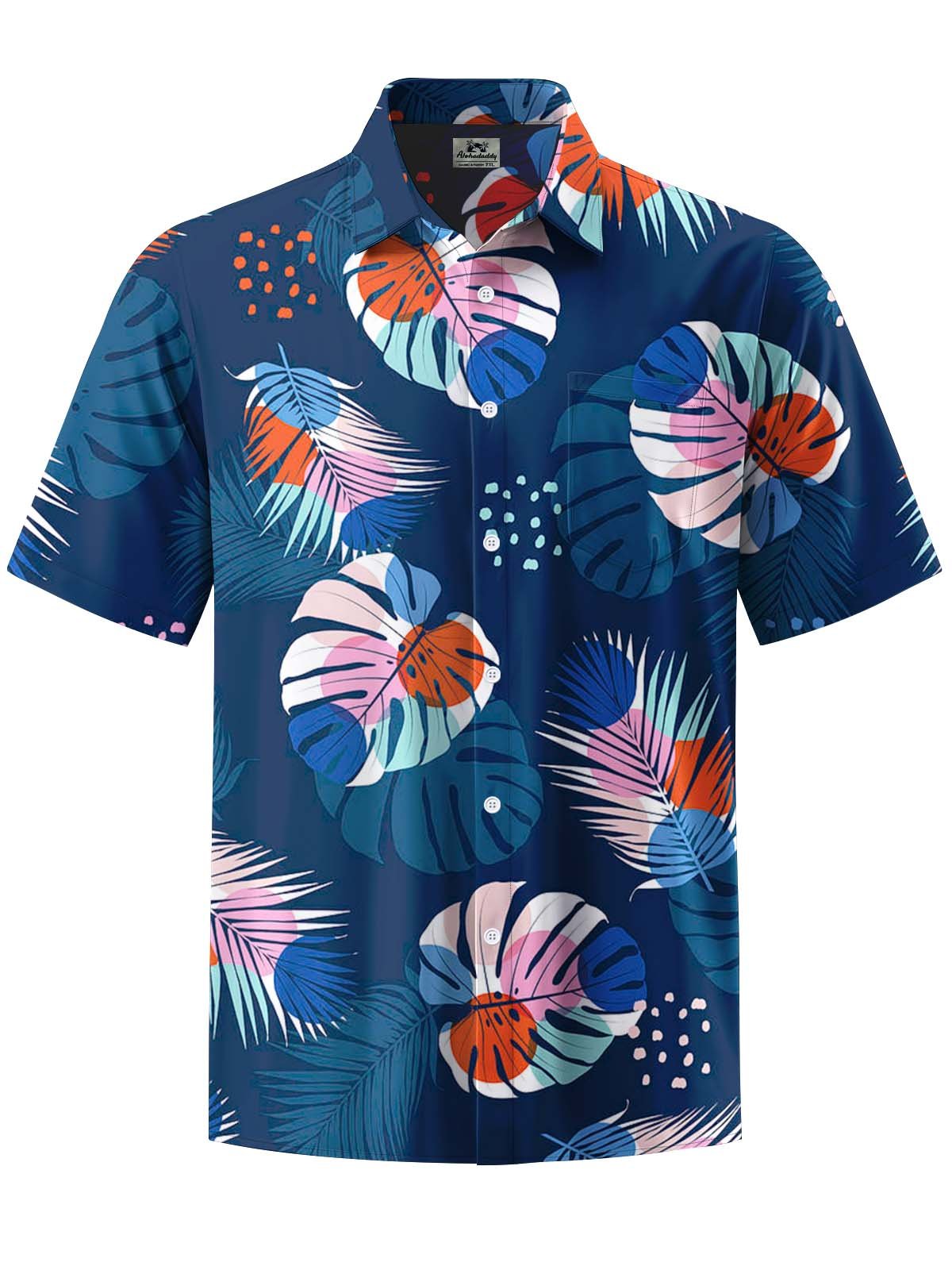 Alohadaddy® Hawaiian Palm Leaf Art Print with Elastic Pockets for Men's Short Sleeve Shirt Big & Tall