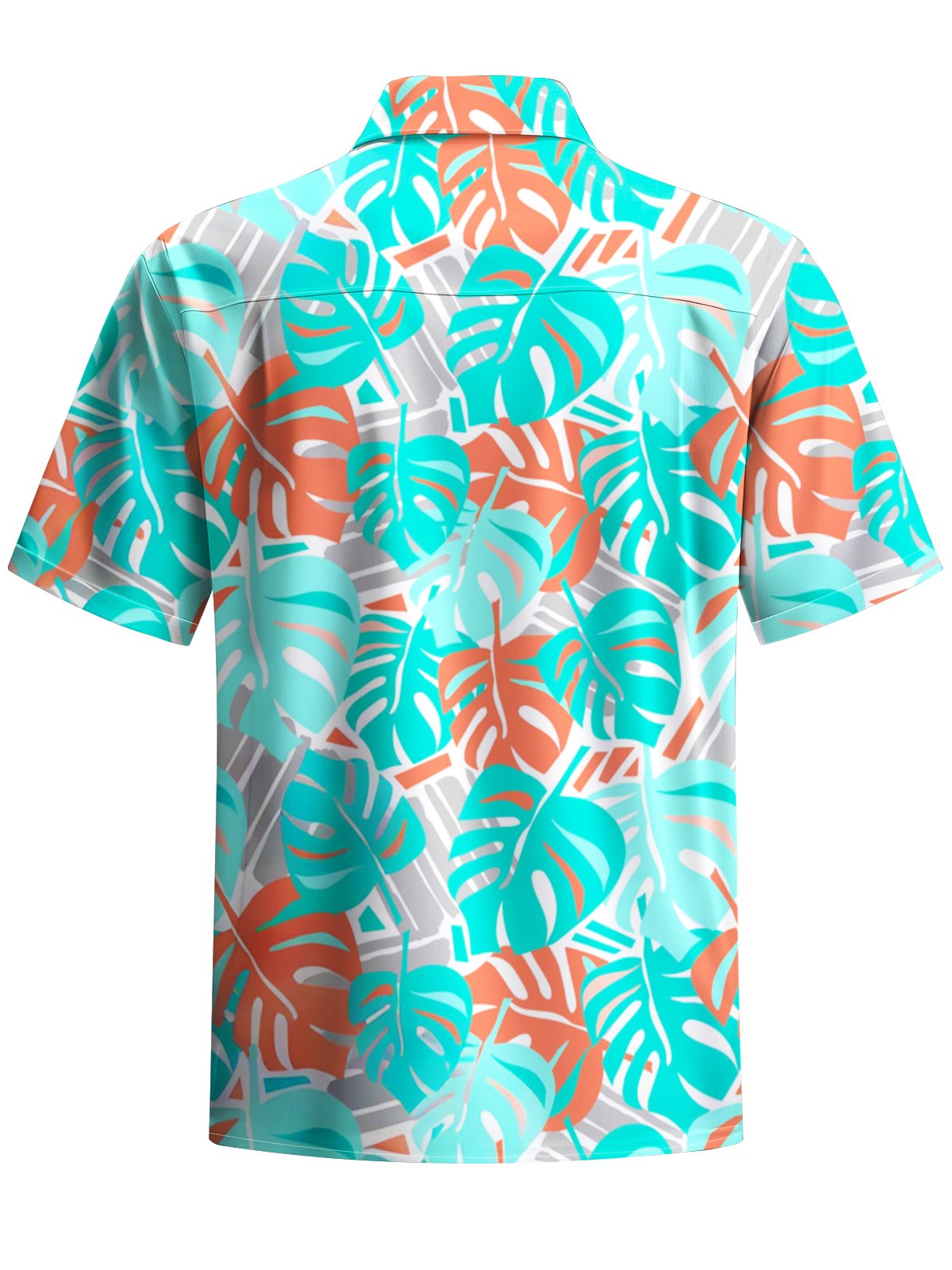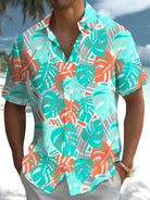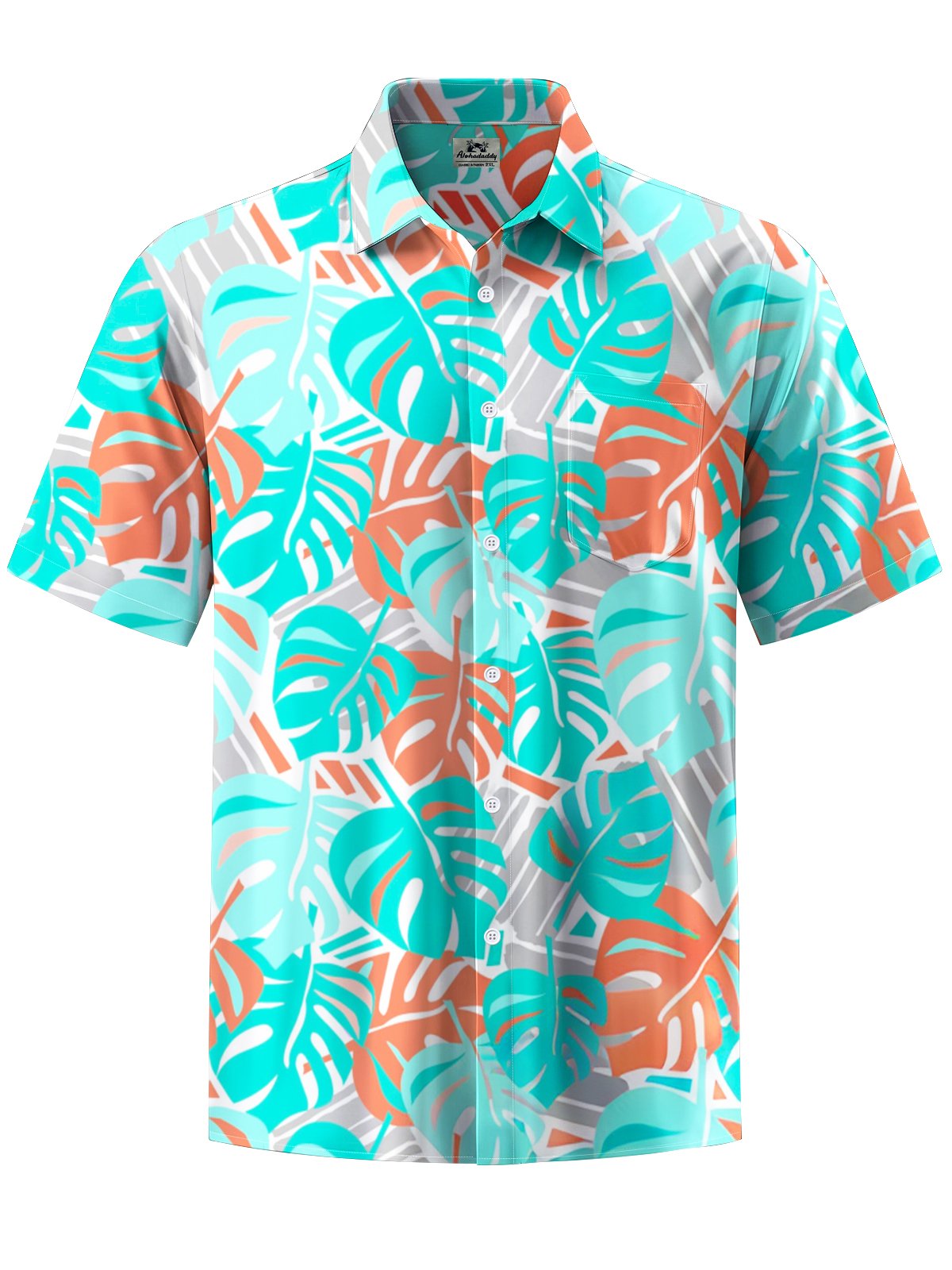 Alohadaddy® Hawaiian Palm Leaf Geometric Print Button Pocket Stretch Men's Short Sleeve Shirt Big & Tall