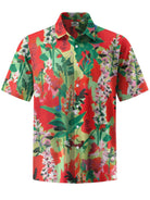 Alohadaddy® Hawaiian Tropical Flower Art Print with Chest Pocket and Elasticity for Men's Short Sleeve Shirt Big & Tall