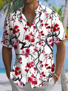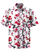 Alohadaddy® Men's Casual Cherry Blossom Ink Painting Print with Chest Pocket Stretch Short Sleeve Shirt Big & Tall