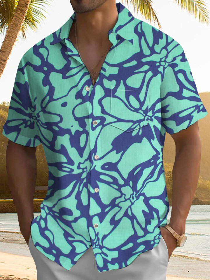 Alohadaddy® Men's Casual Floral Art Print Chest Pocket Stretch Short Sleeve Shirt Big & Tall