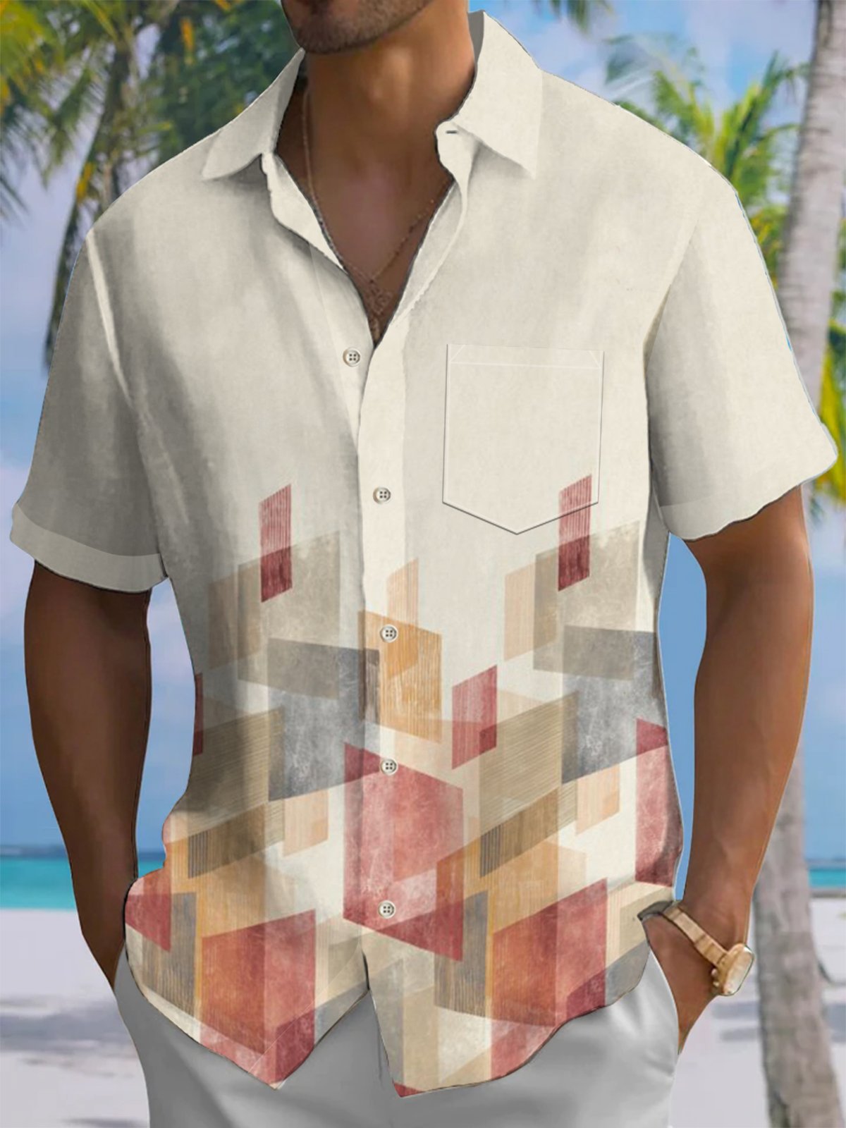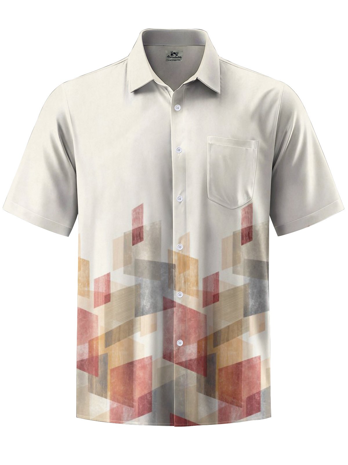 Alohadaddy® Men's Casual Geometric Art Print Moisture-Wicking Chest Pocket Short Sleeve Shirt Big & Tall