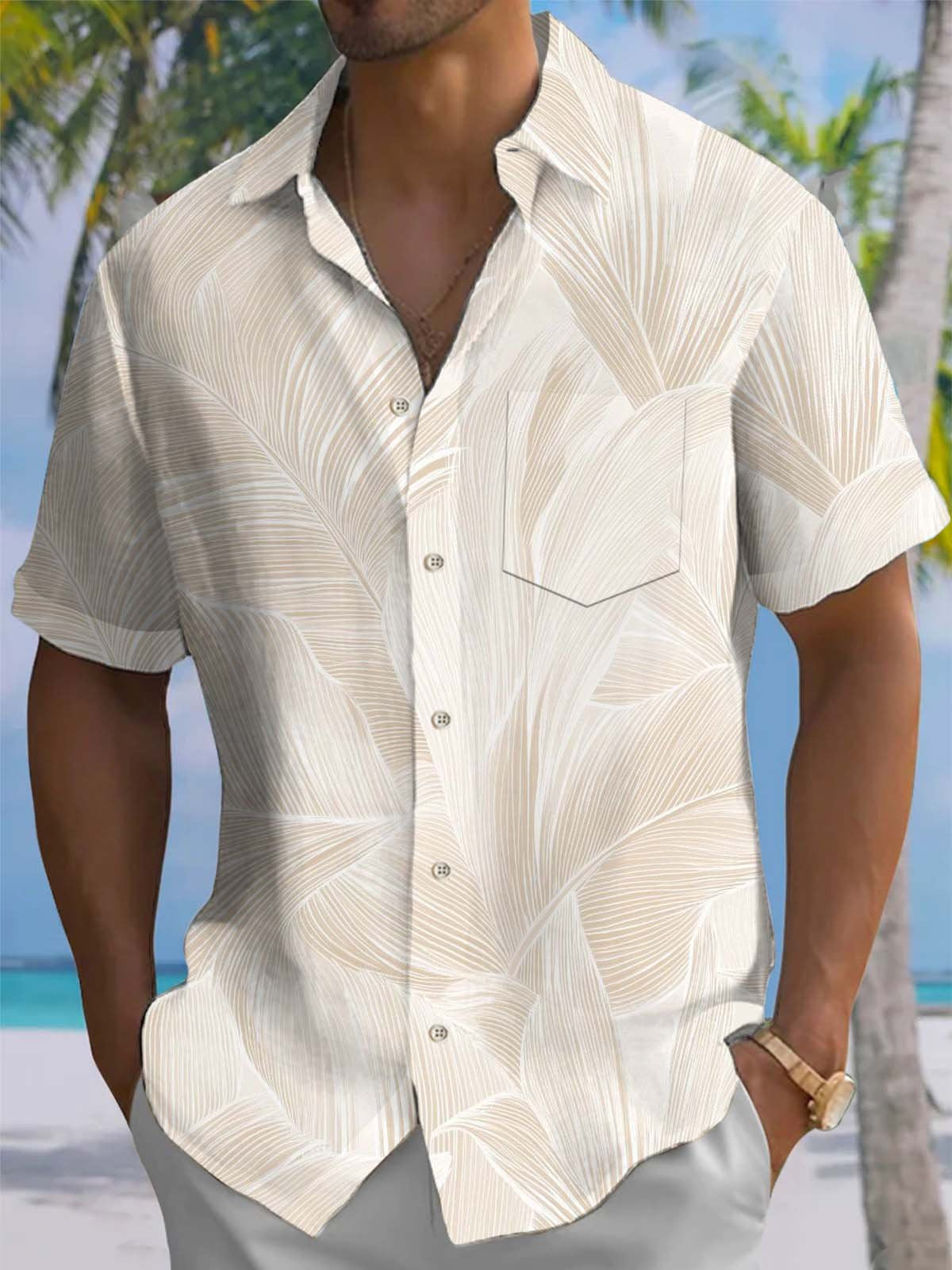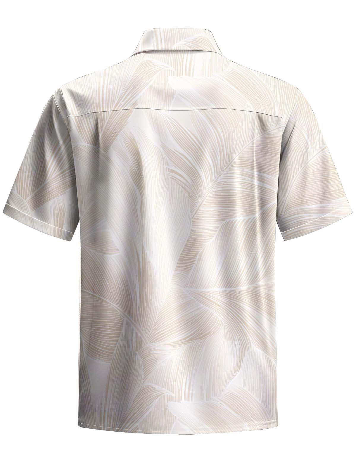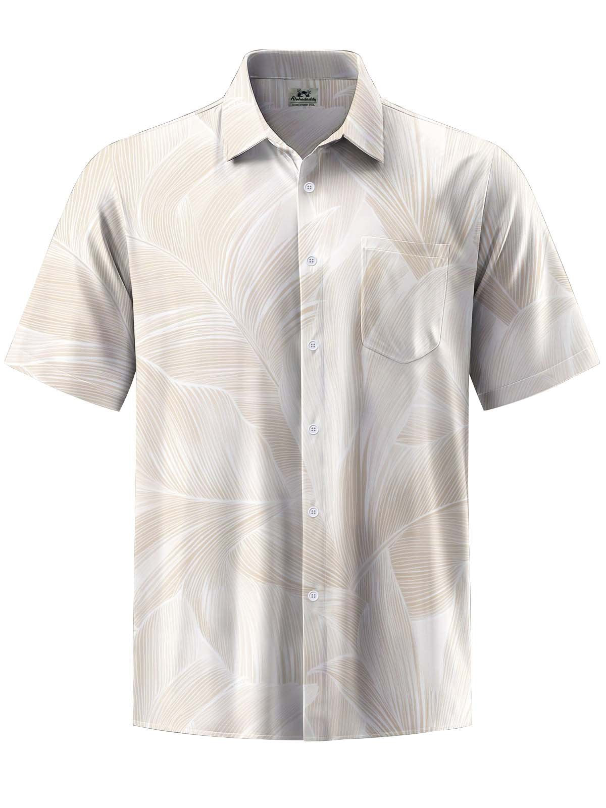 Alohadaddy® Men's Casual Leaf Art Print Chest Pocket Stretch Short Sleeve Shirt Big & Tall