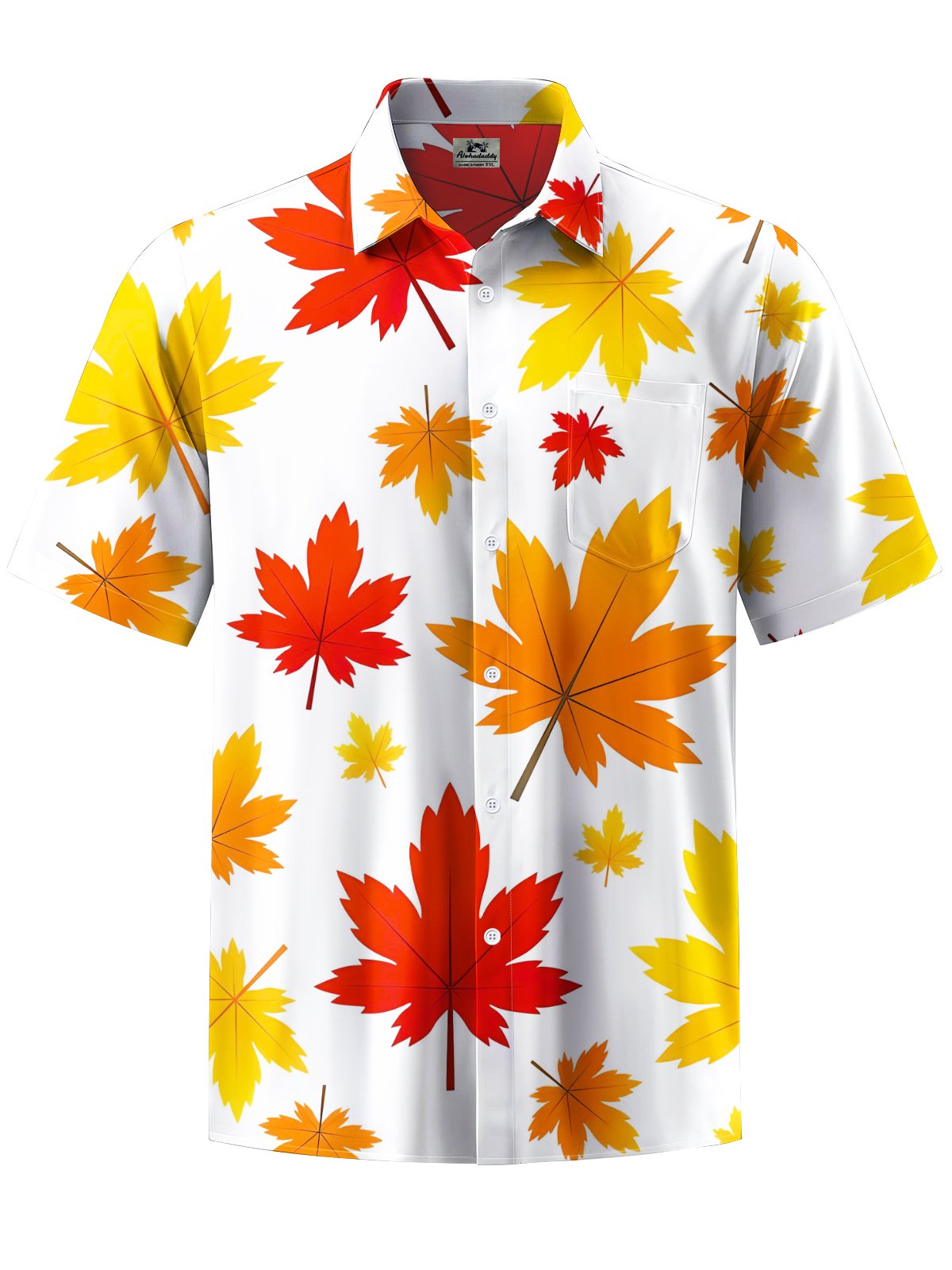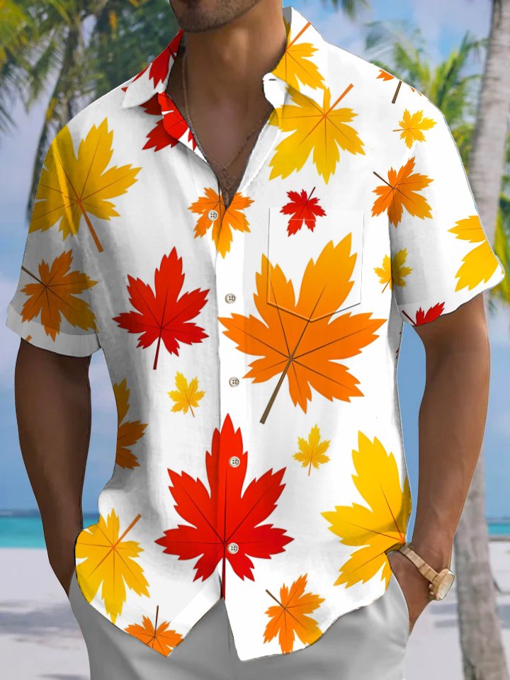 Alohadaddy® Men's Casual Maple Leaf Art Print Chest Pocket Short Sleeve Shirt Big & Tall