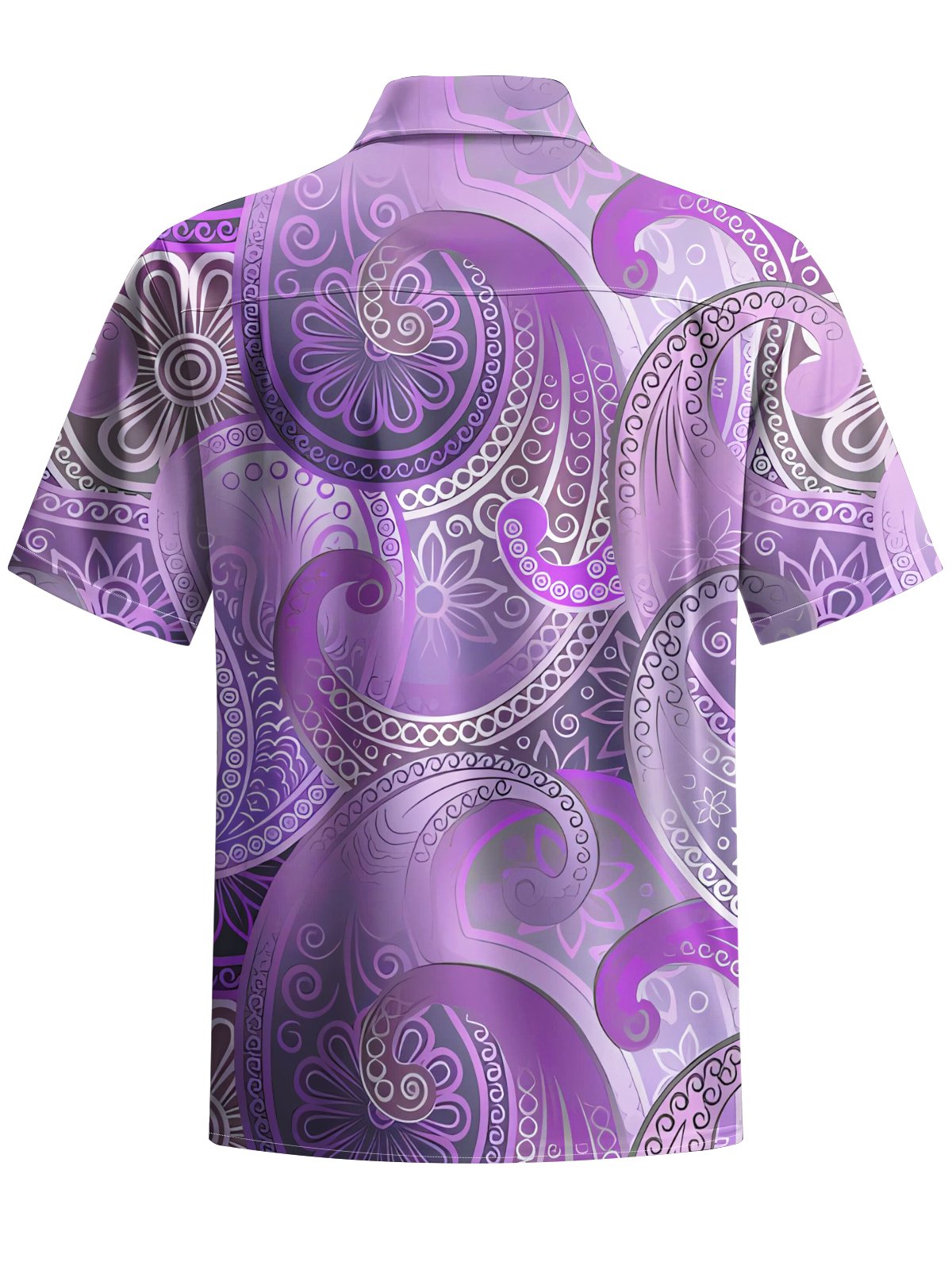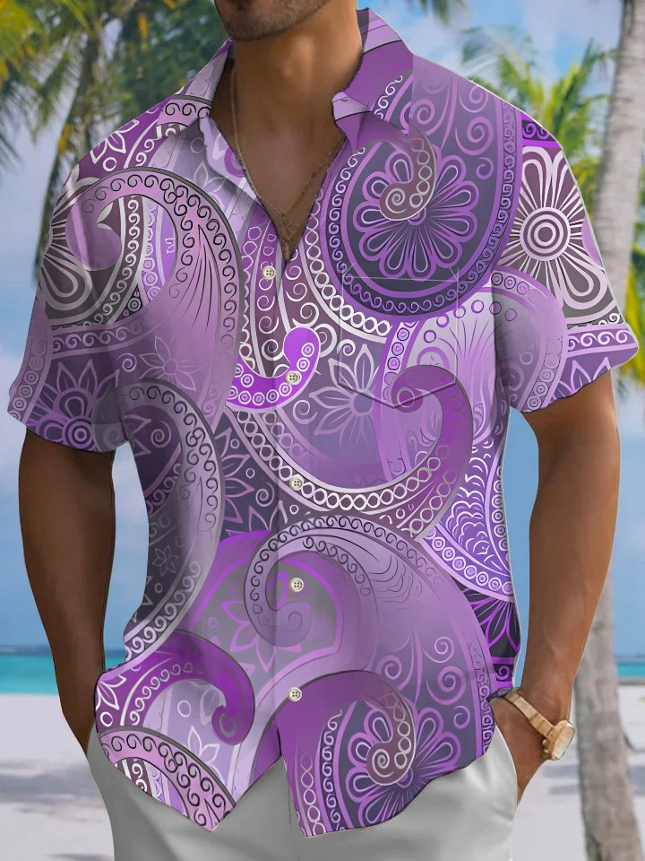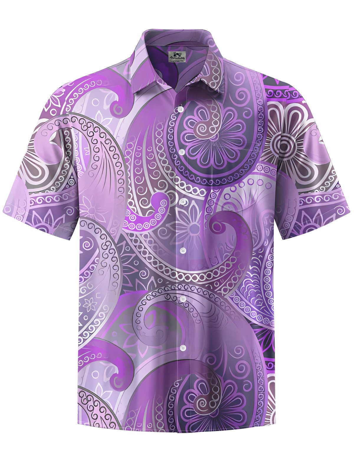 Alohadaddy® Men's Casual Paisley Printed Chest Pocket Stretch Short Sleeve Shirt Big & Tall