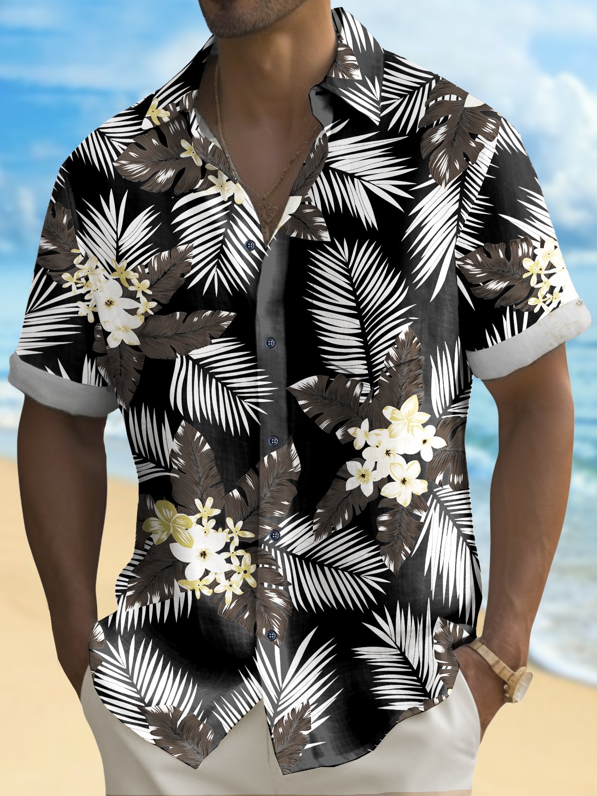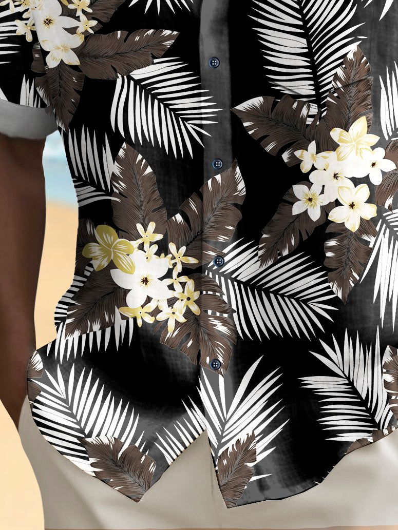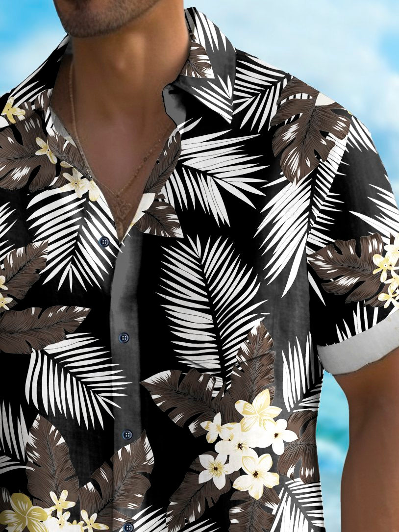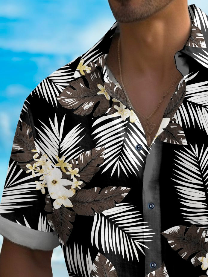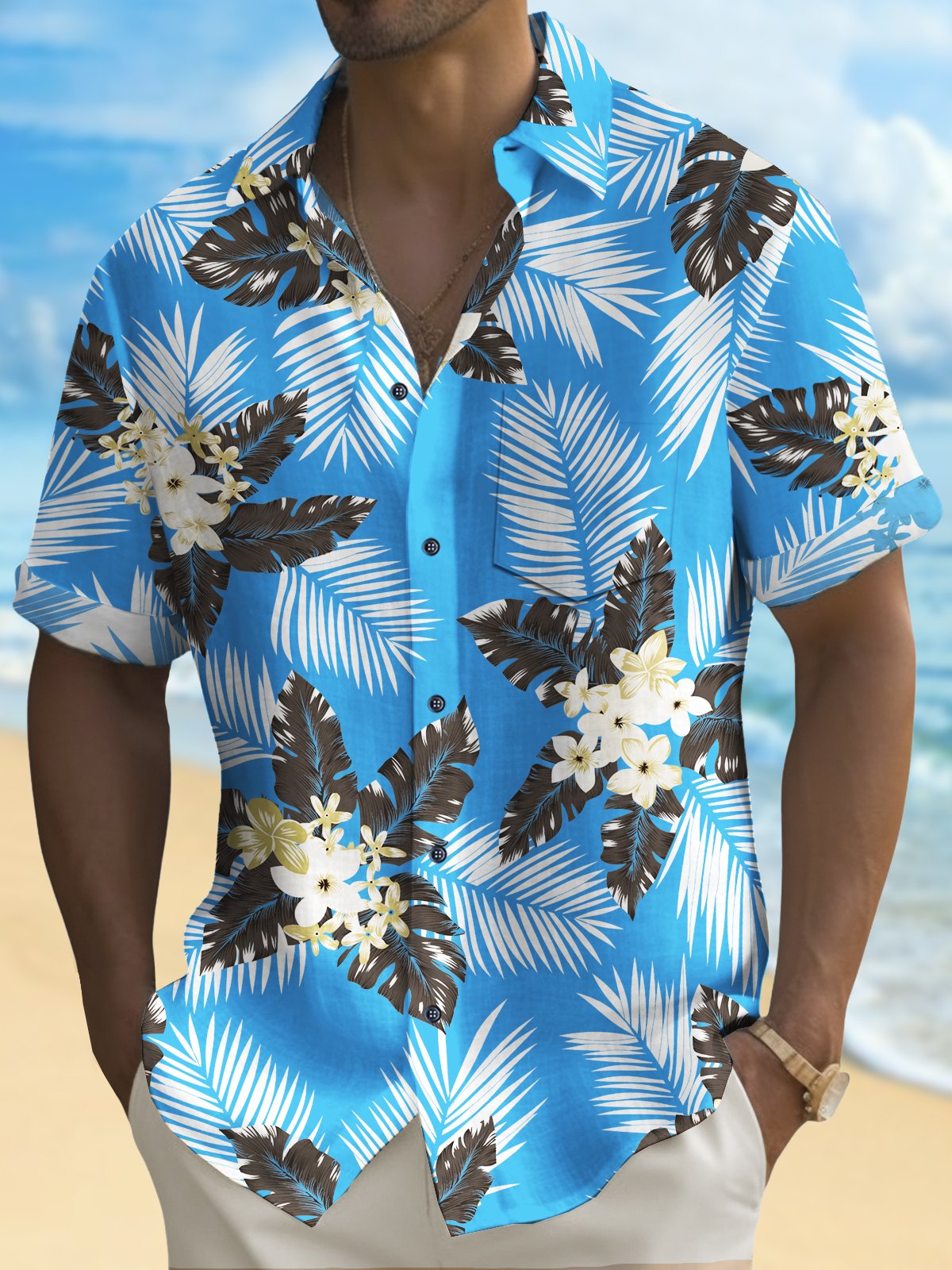 Alohadaddy Beach Vacation Men's Hawaiian Shirt Botanical Floral Print Pocket Camping Shirt