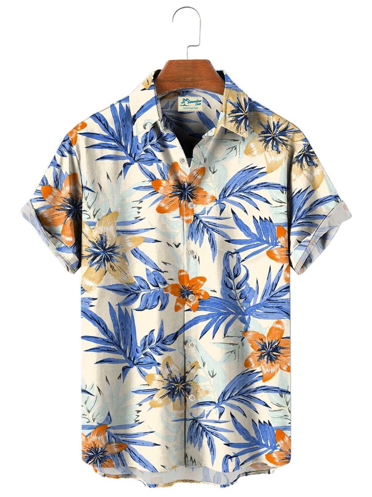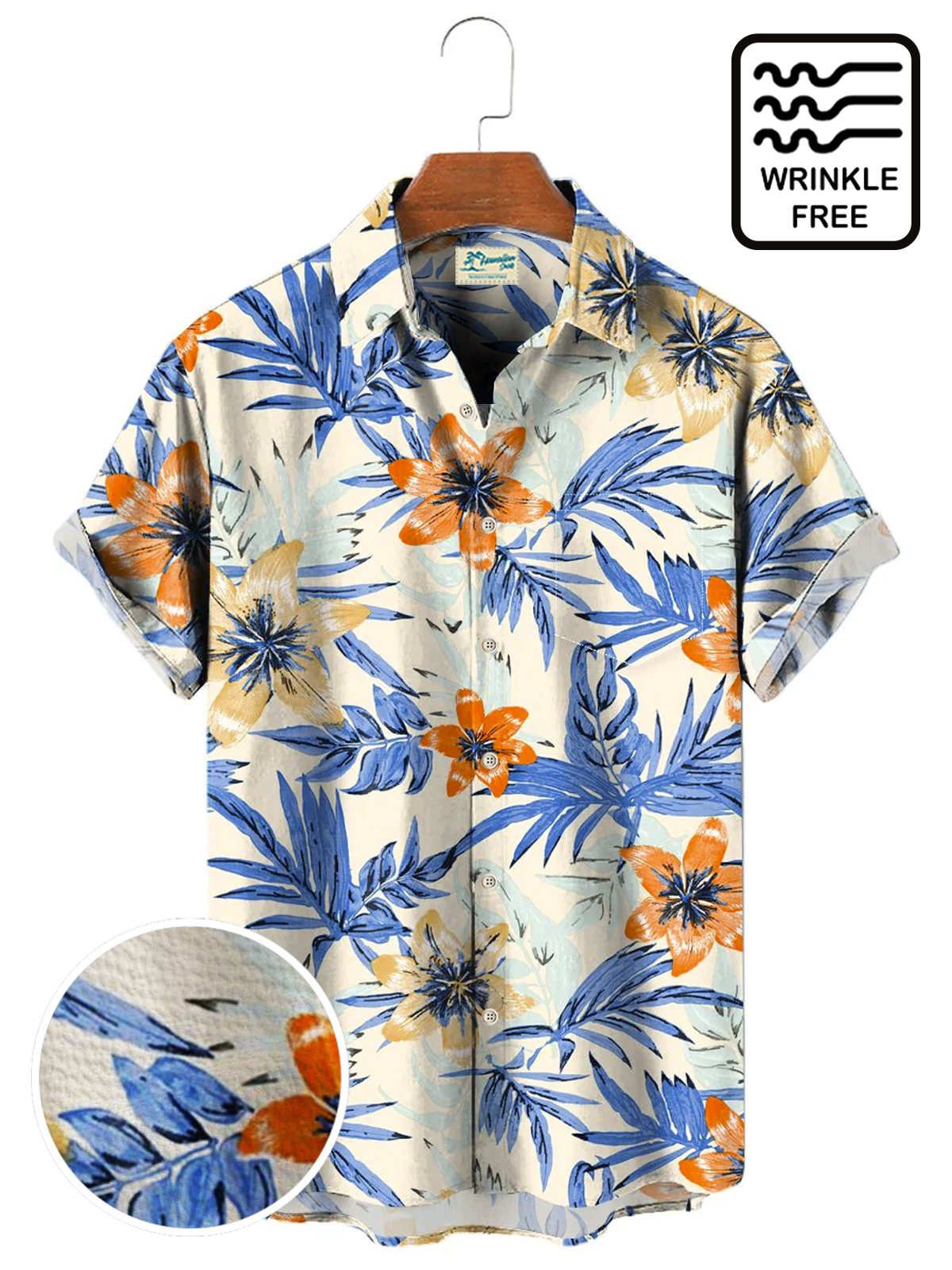Alohadaddy Beach Vacation Tropical Floral Men's Hawaiian Shirt Wrinkle Free Seersucker Plus Size Aloha Art Shirts