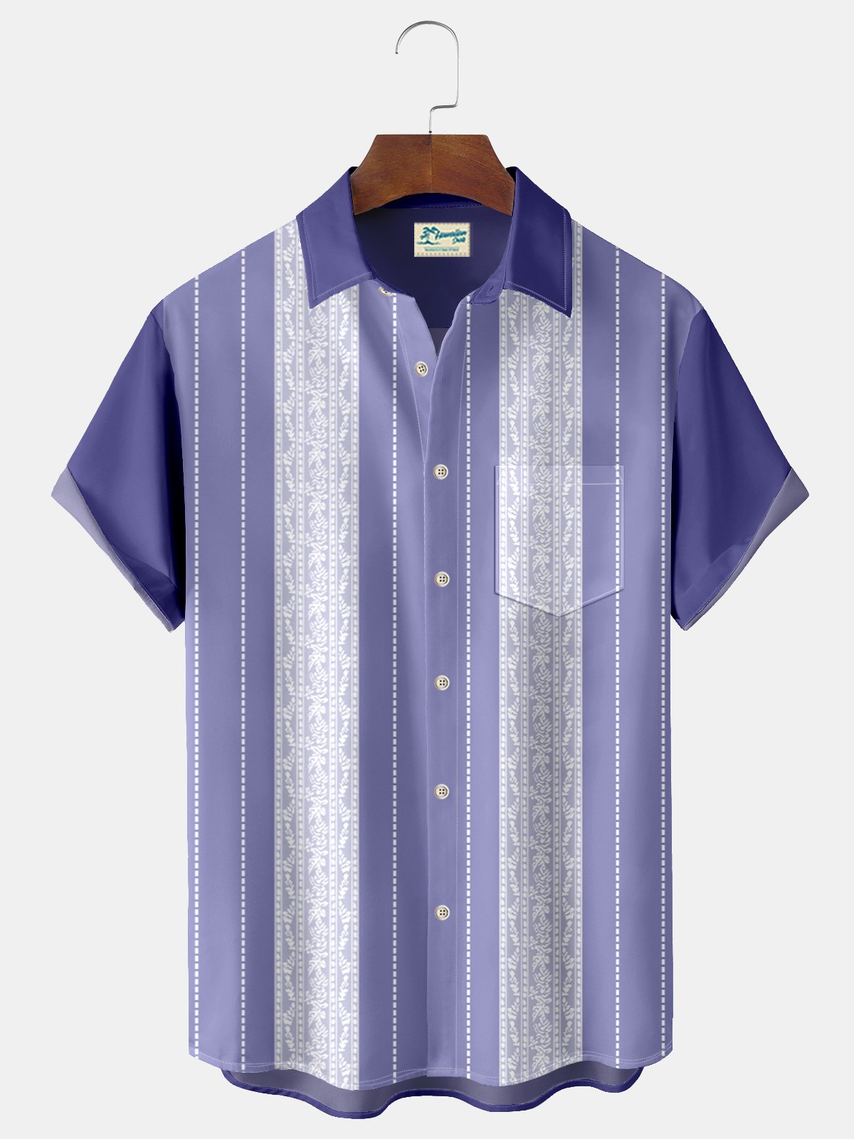 Alohadaddy Floral Stripe Print Beach Men's Hawaiian Oversized Shirt with Pockets