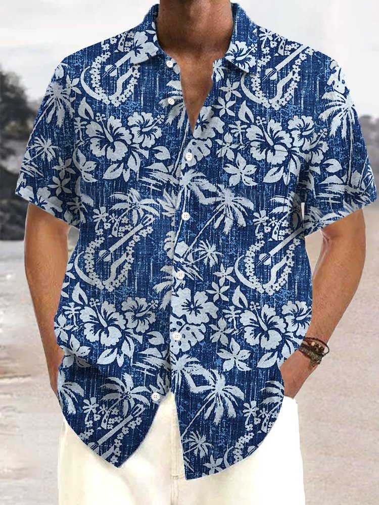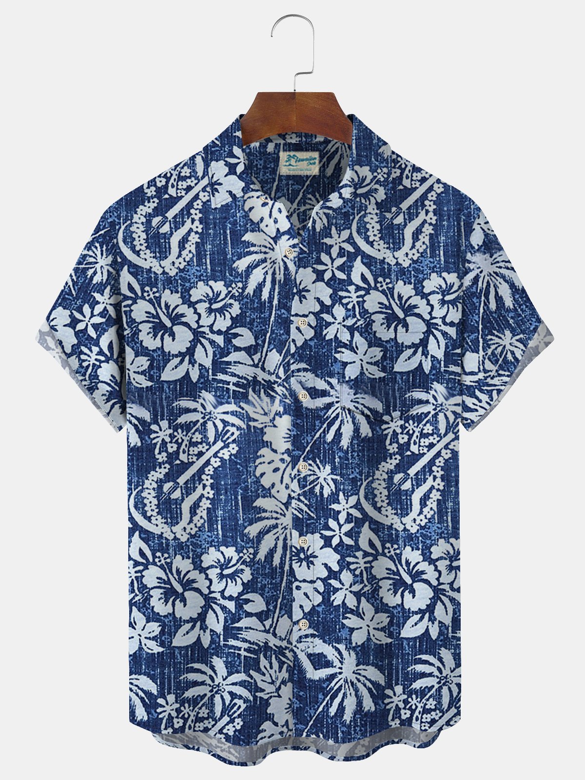 Alohadaddy Hawaiian Botanical Floral Print Men's Button Pocket Shirt