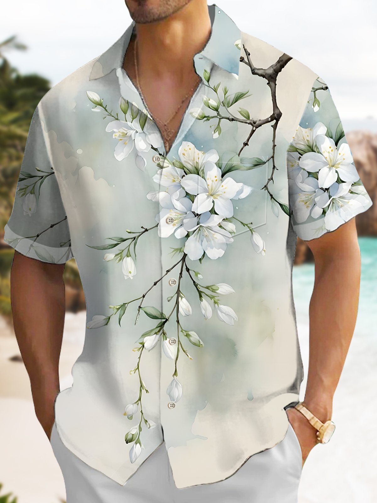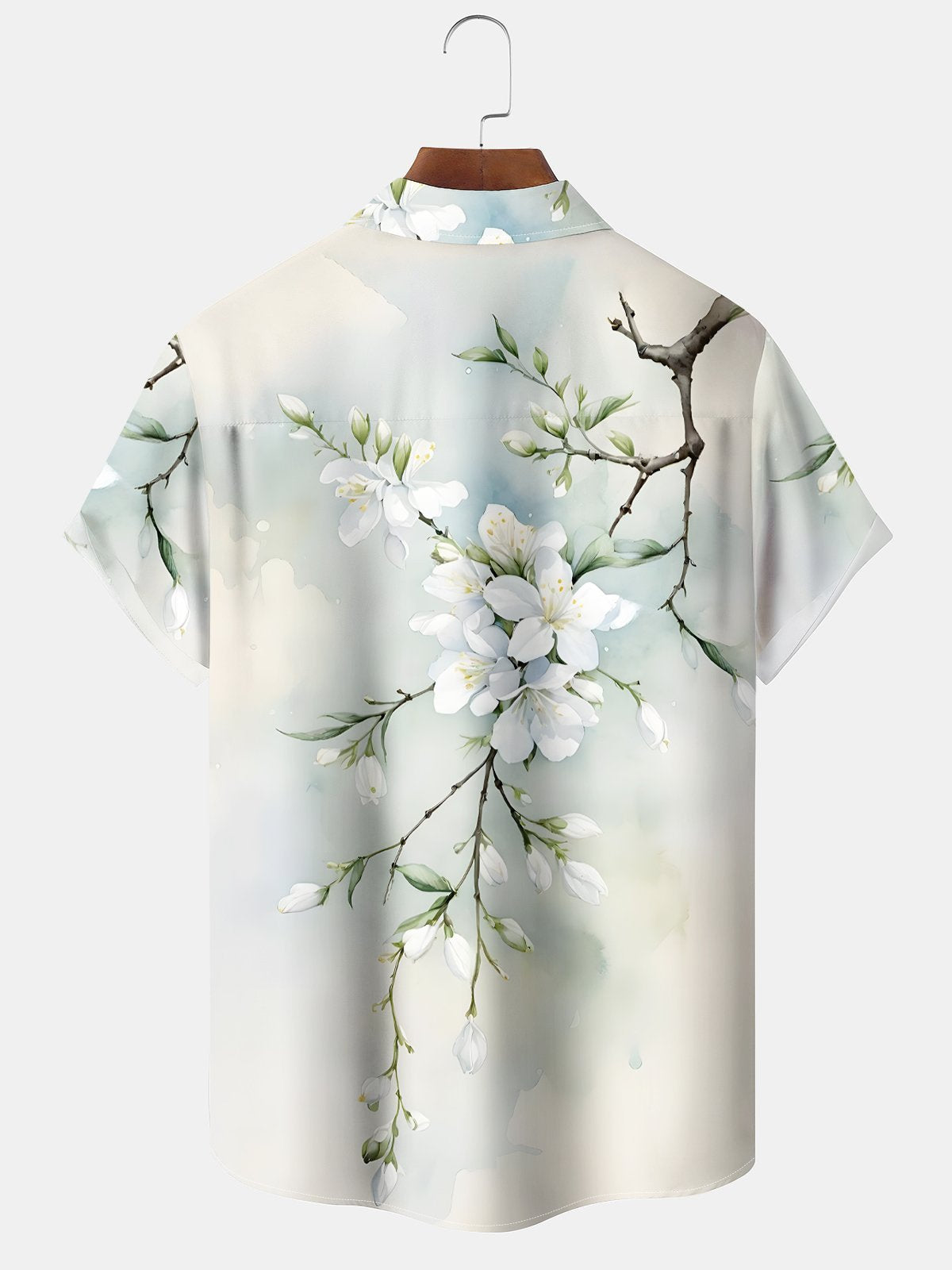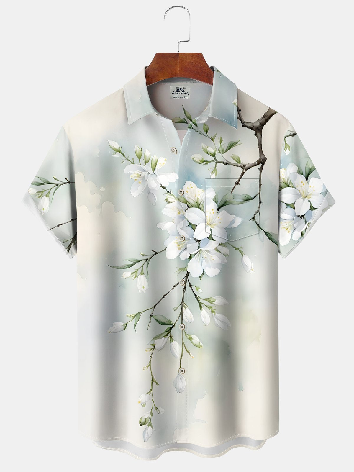 Alohadaddy Hawaiian Floral Art Print Men's Button Pocket Short Sleeve Shirt
