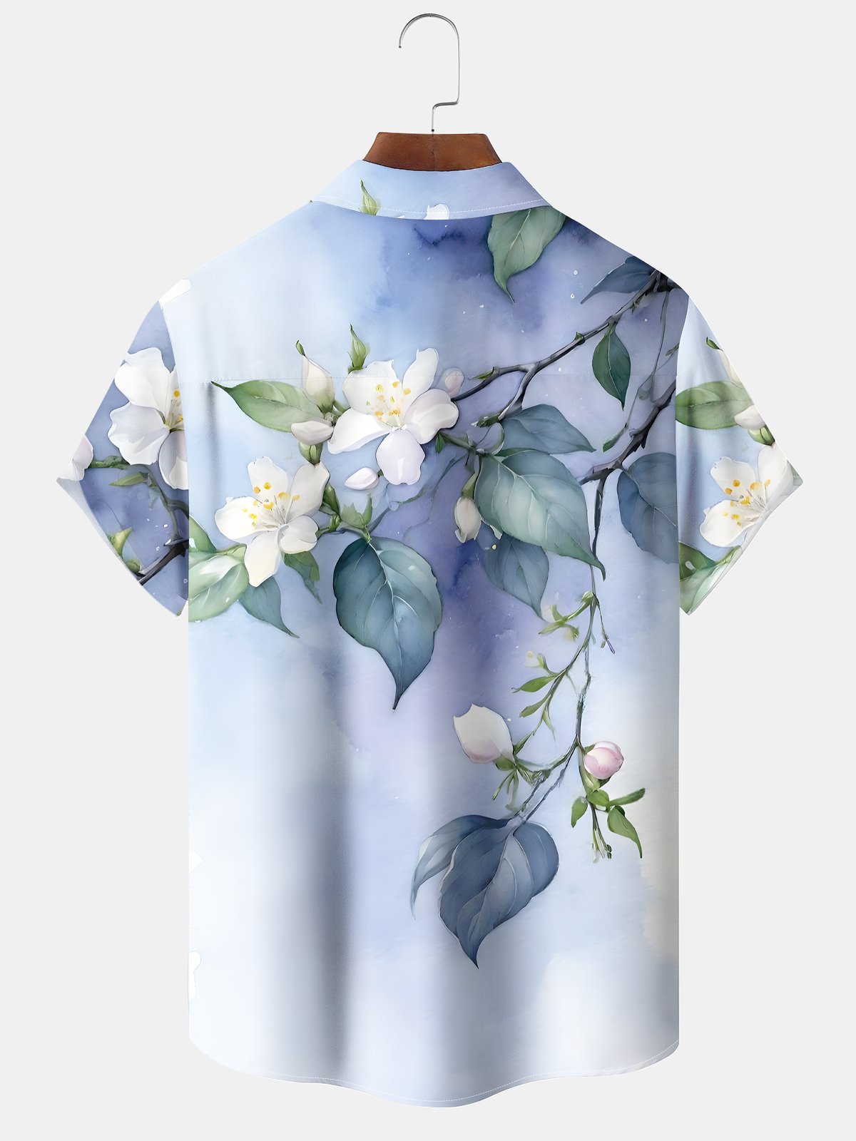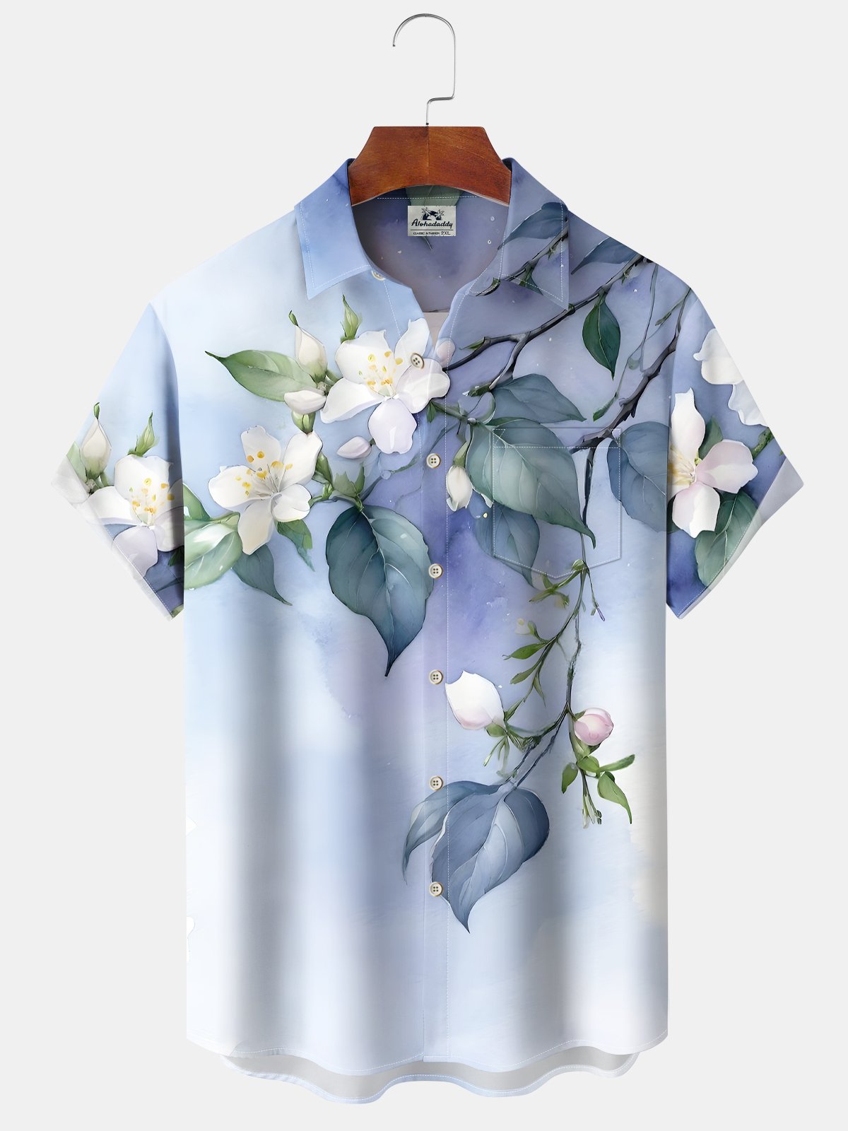 Alohadaddy Hawaiian Floral Art Smudge Pocket Button-Down Shirt