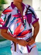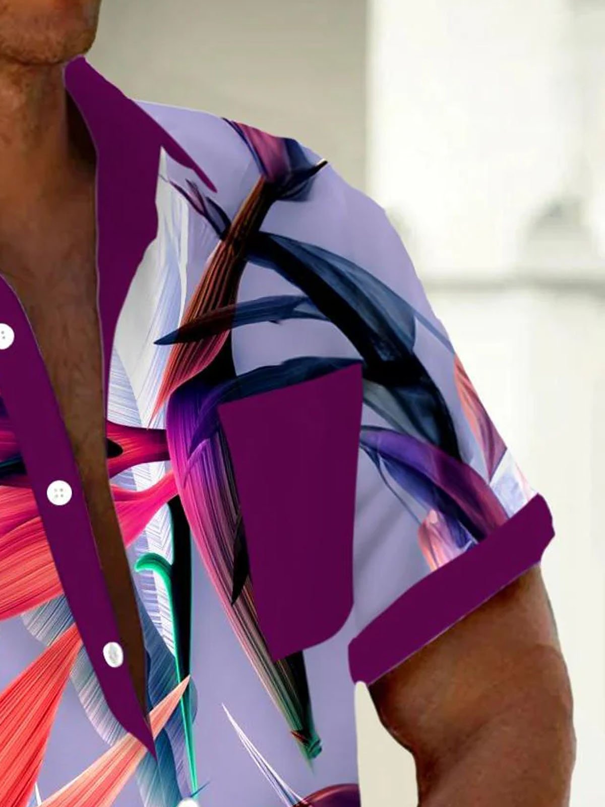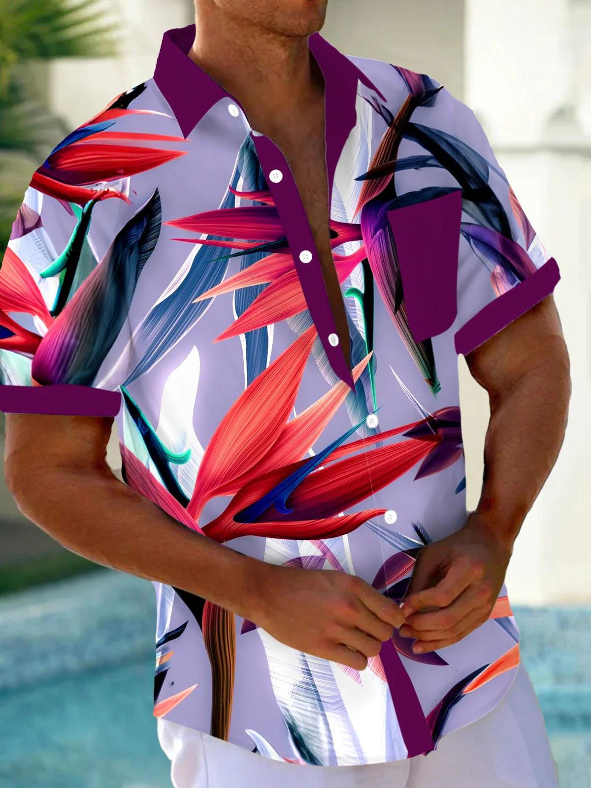 Alohadaddy Hawaiian Flower 3D Digital Print Men's Button Pocket Short Sleeve Shirt Big & Tall