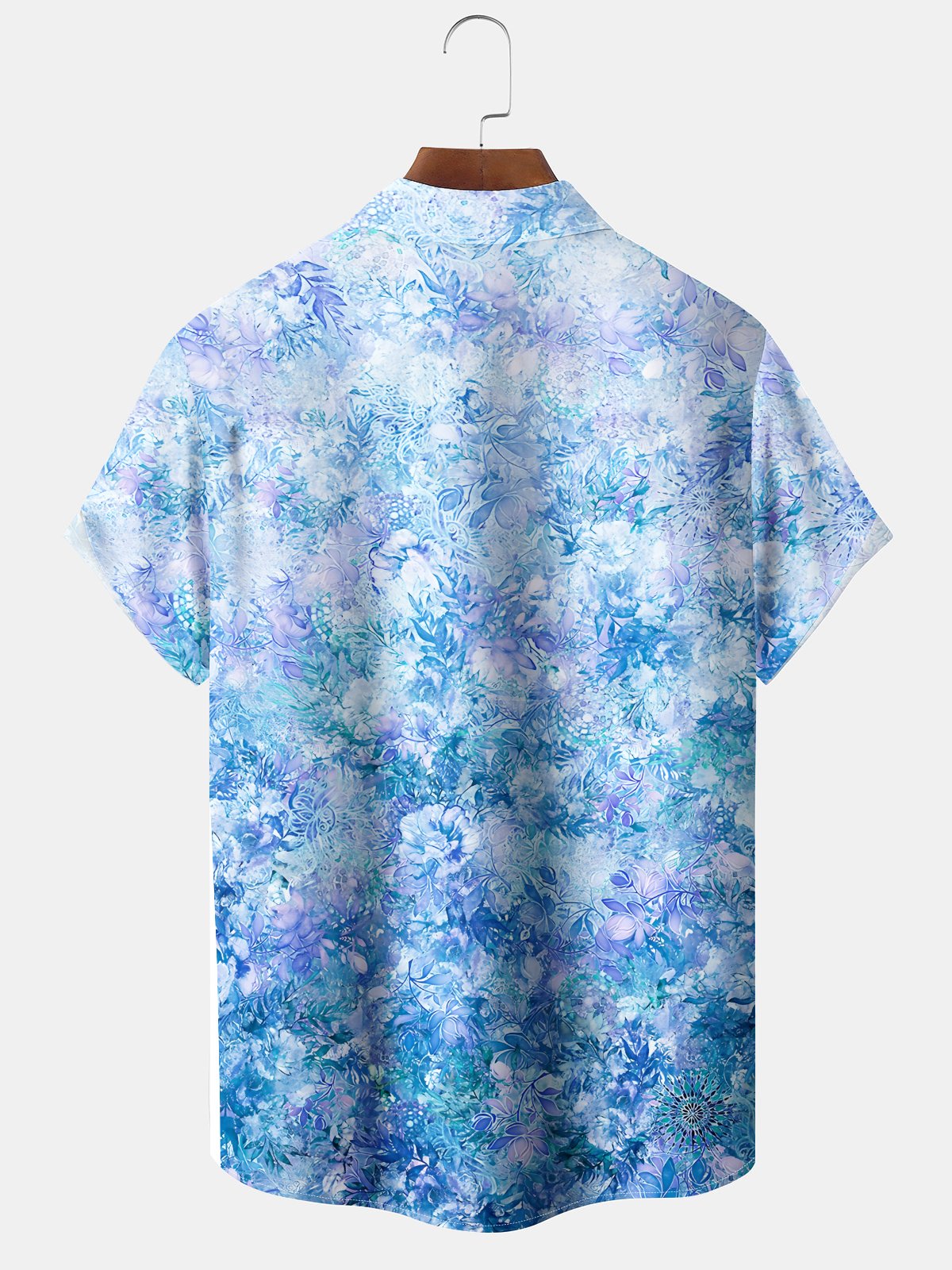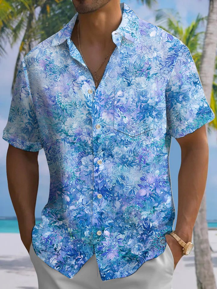 Alohadaddy Hawaiian Flowers Gradient Print Art Button Cardigan Pockets Breathable Soft Long Large Size Short Sleeve Shirt
