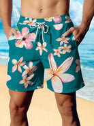 Alohadaddy Hawaiian Green Men's Beach Shorts Floral Print Stretch Plus Size Shorts
