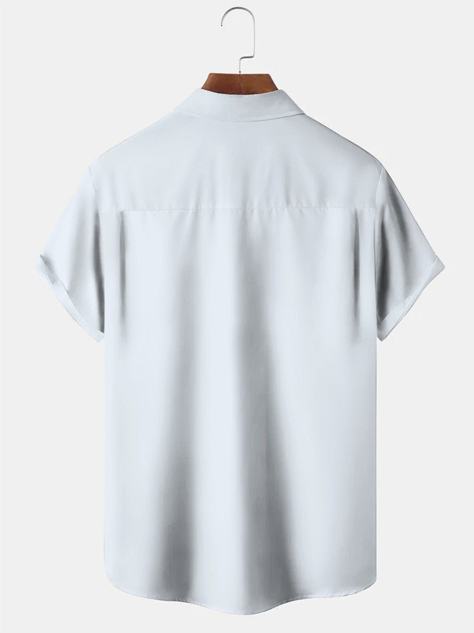Alohadaddy Plant Flower National Men Pocket Button Casual 50S Bowling Commuter Short Sleeve Shirt