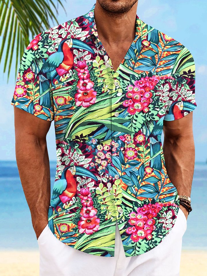 Alohadaddy Plant Flower Pocket Button Casual Short Sleeve Shirt