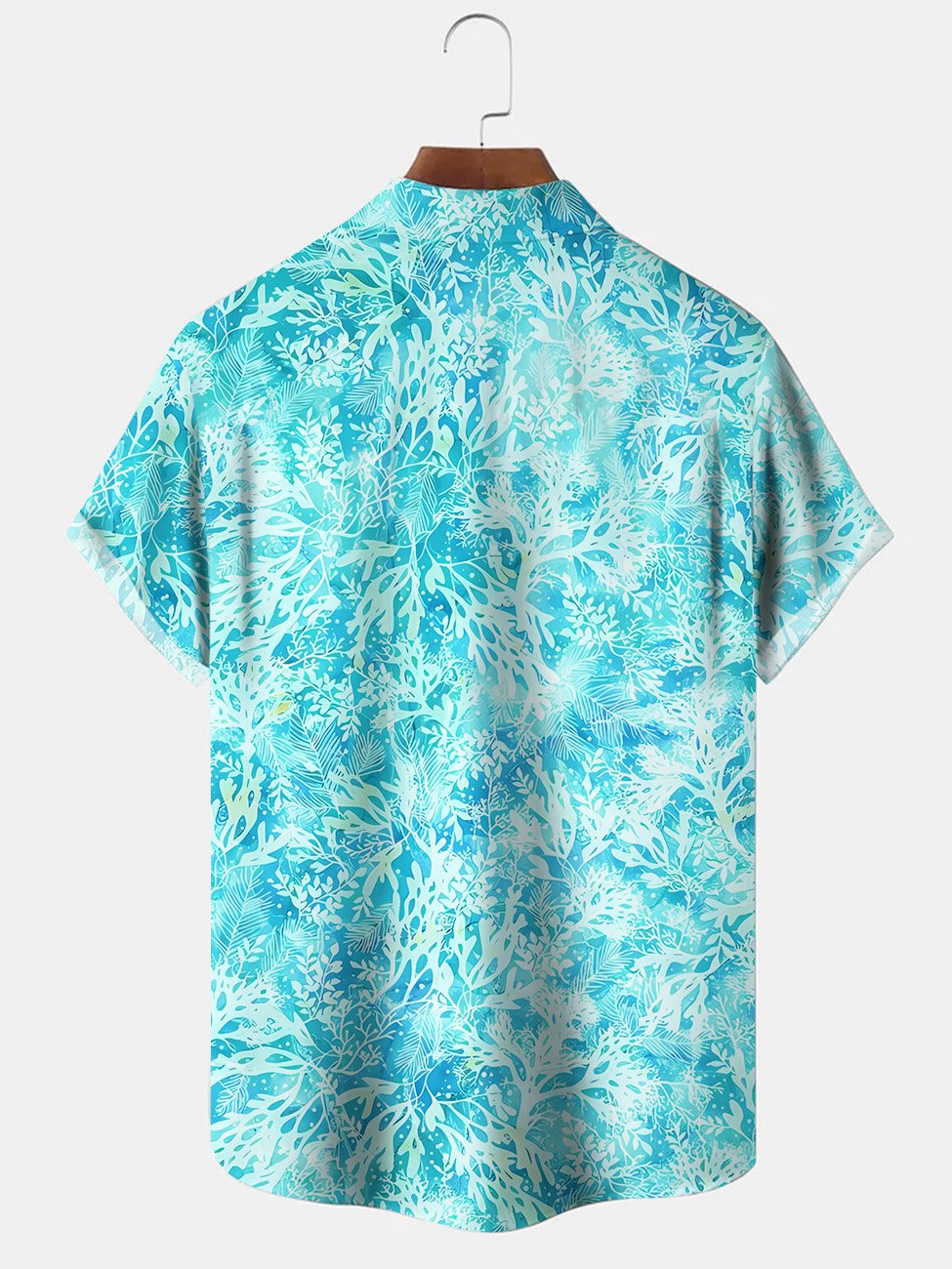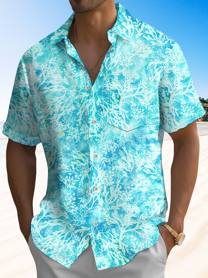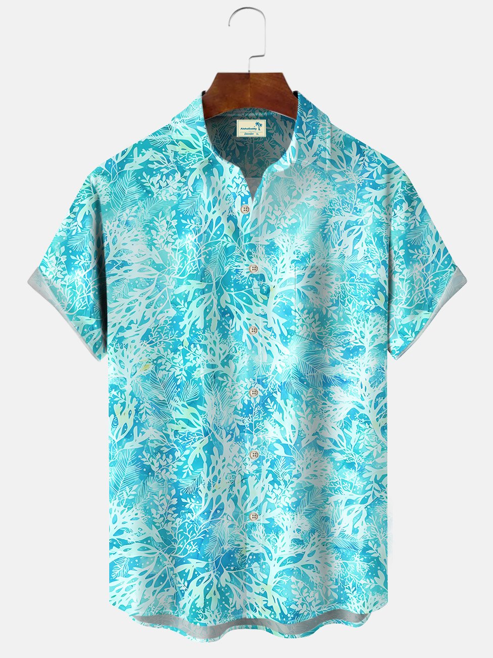Alohadaddy Plant Leaves Buttons Pockets Casual Short Sleeve Shirt