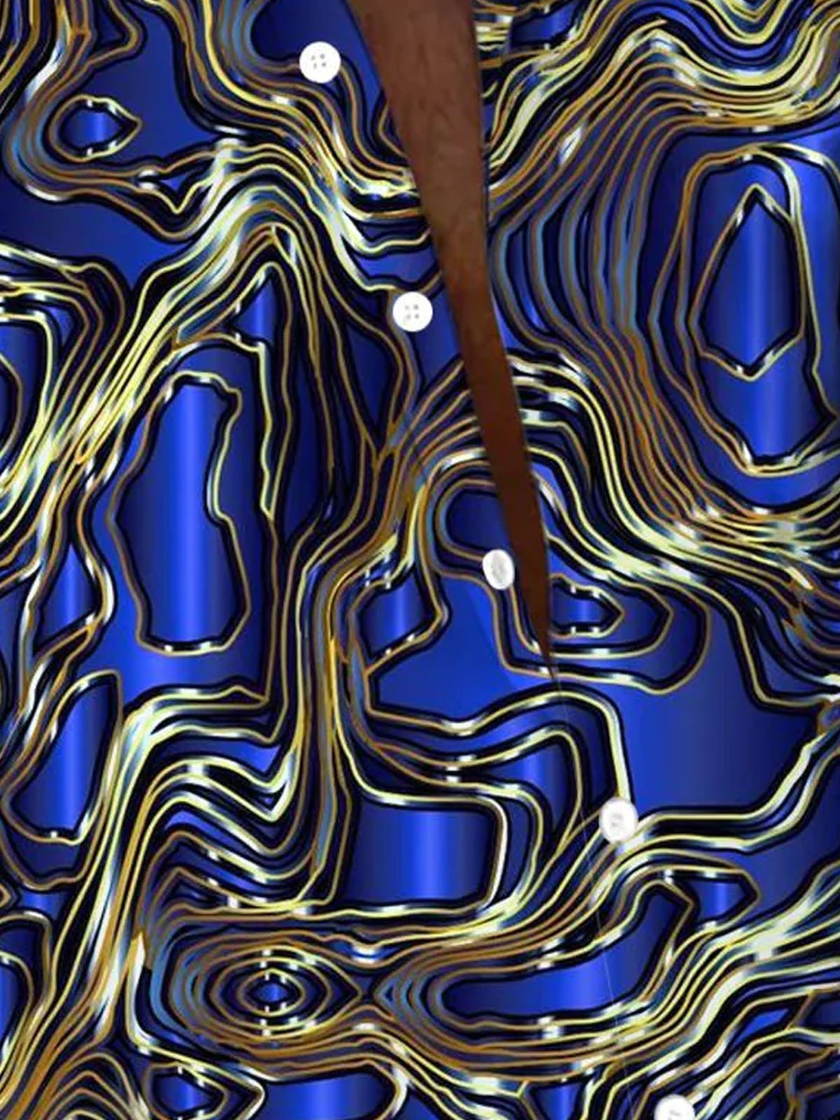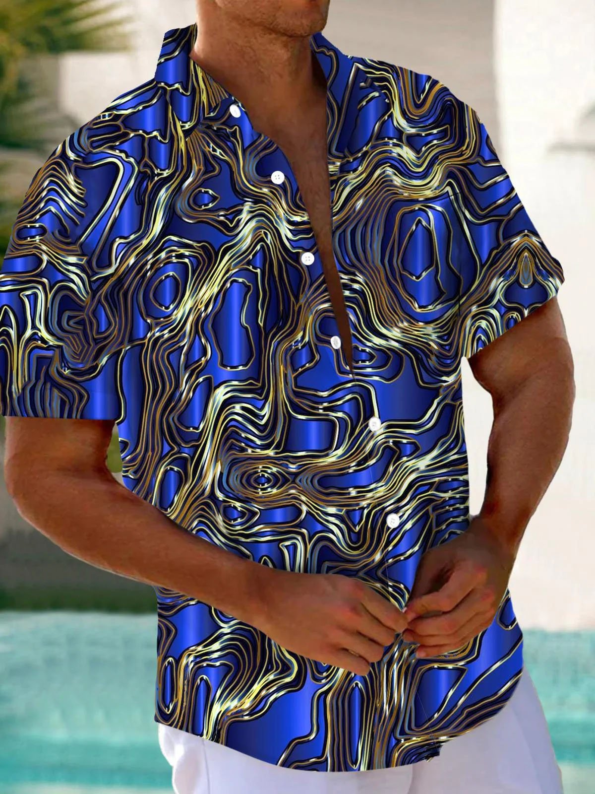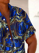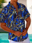 Alohadaddy Retro Art Textured 3D Gilt Print Men's Button Pocket Short Sleeve Shirt